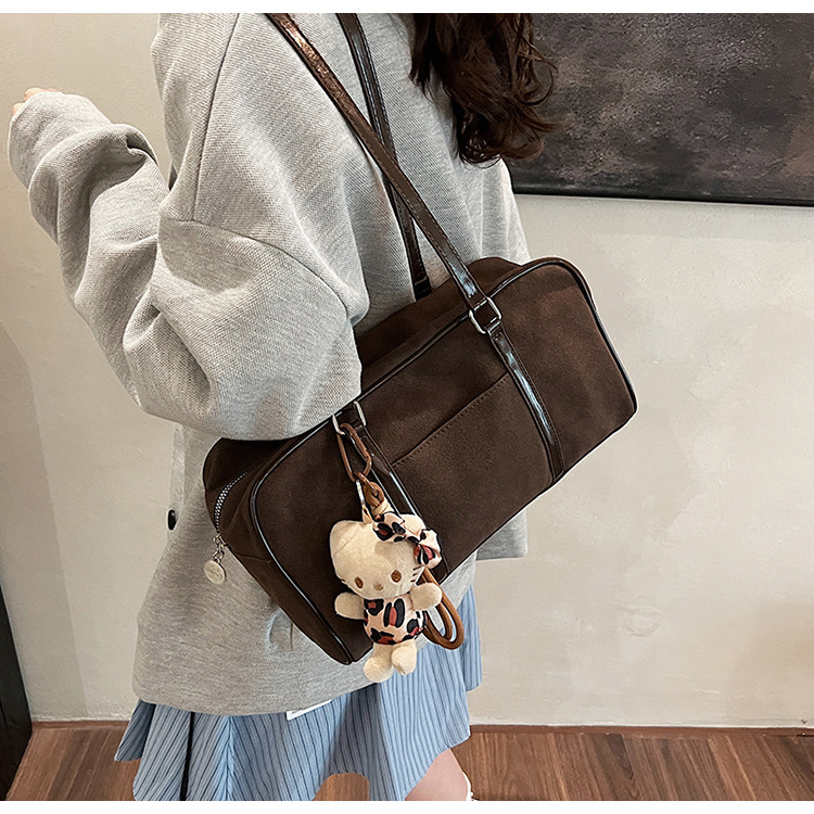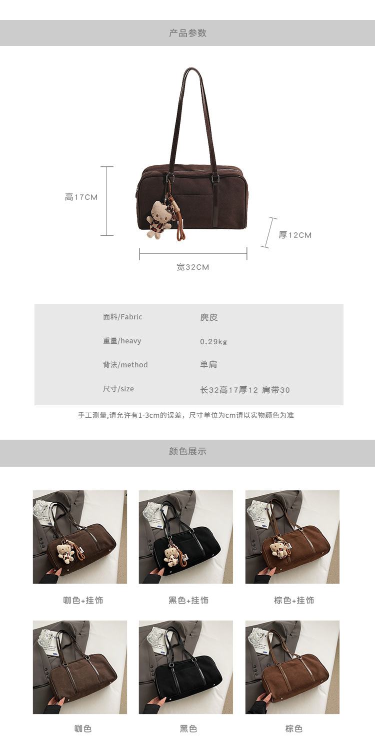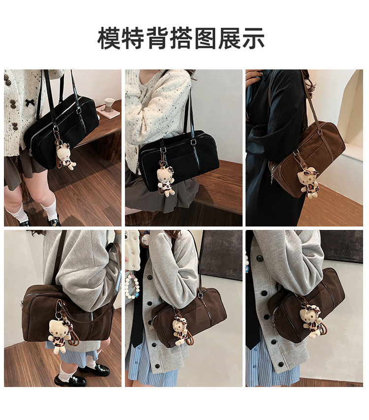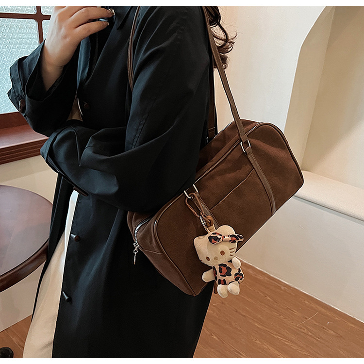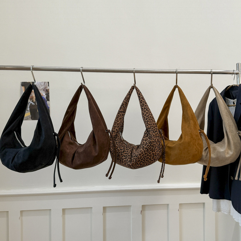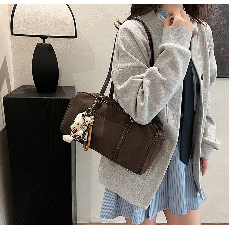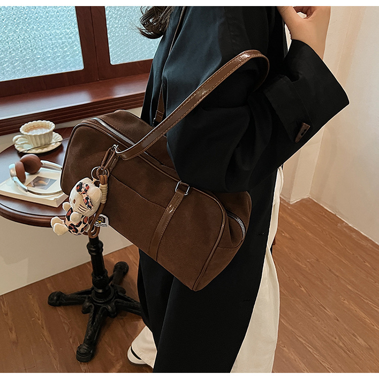 复古麂皮简约斜挎慵懒风托特秋冬新款大容量时尚单肩大包饺子包