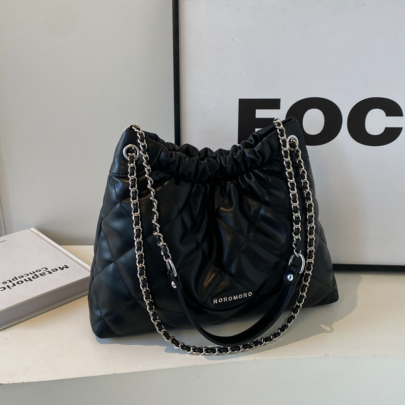复古轻奢菱格链条腋下包包女2025早秋款大容量百搭抽绳单肩福袋包