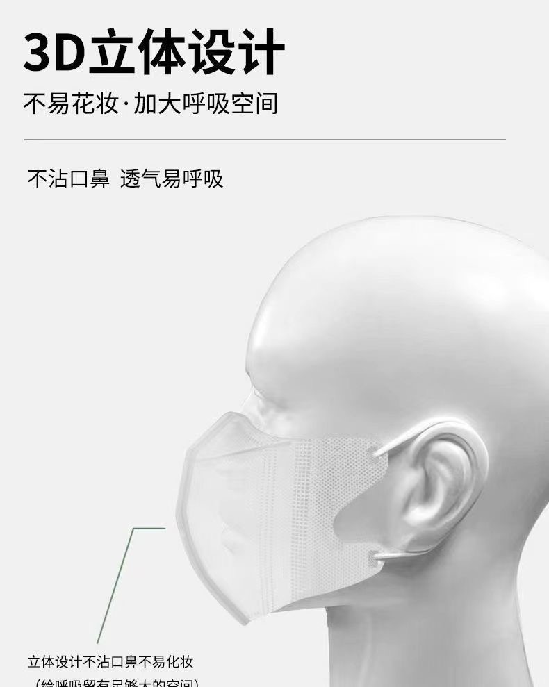 3D高颜值时尚显瘦撞色耳带一次性透气独立包装四层口罩