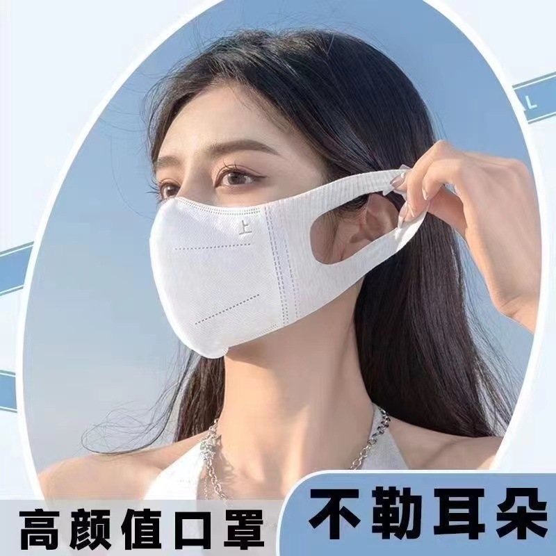 白い3d立体使い捨てマスク男女日焼け止め薄いタイプの白い顔の湿ったタイプの広い耳帯弾力マスク