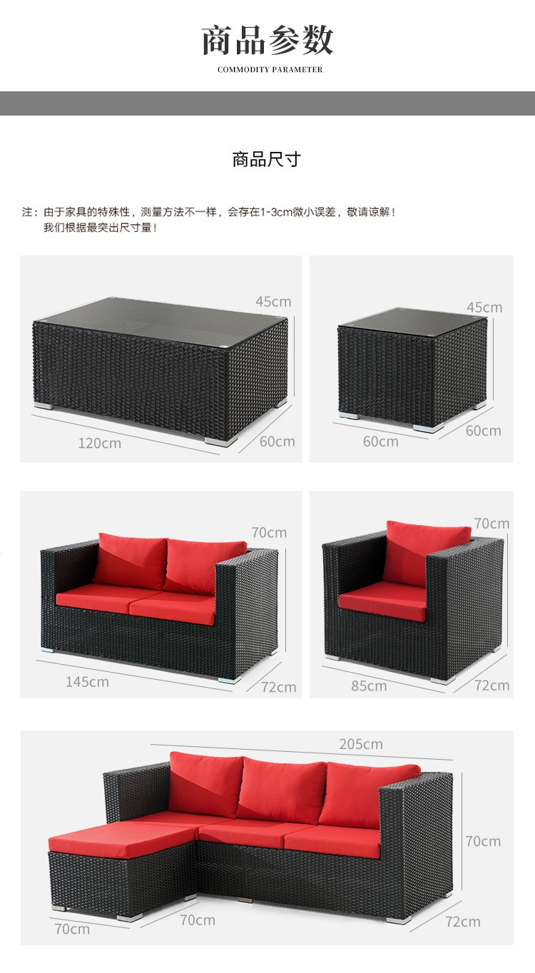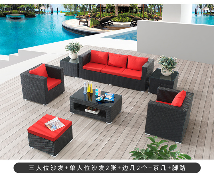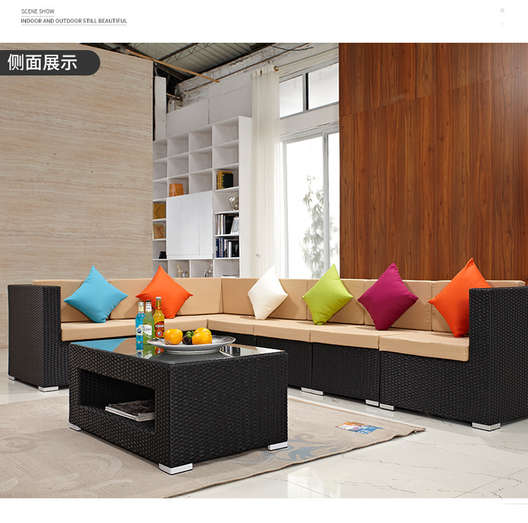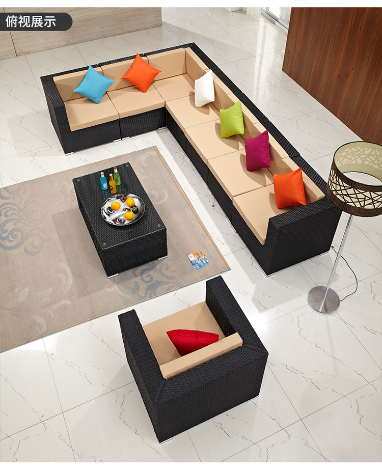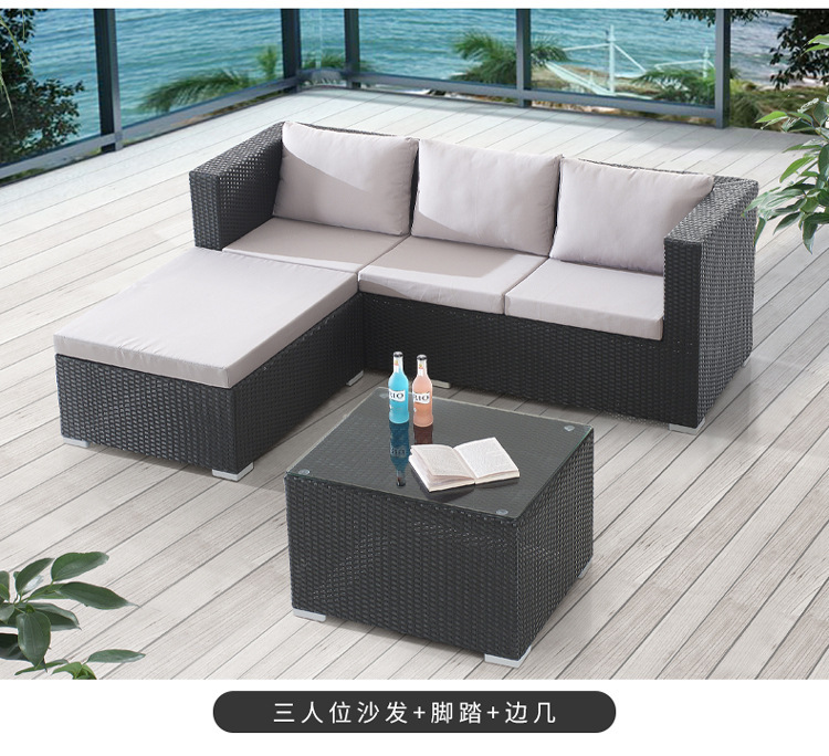 籐椅子ソファ屋外テラスレジャー屋外籐家具別荘庭防水籐編みコーナーソファセット