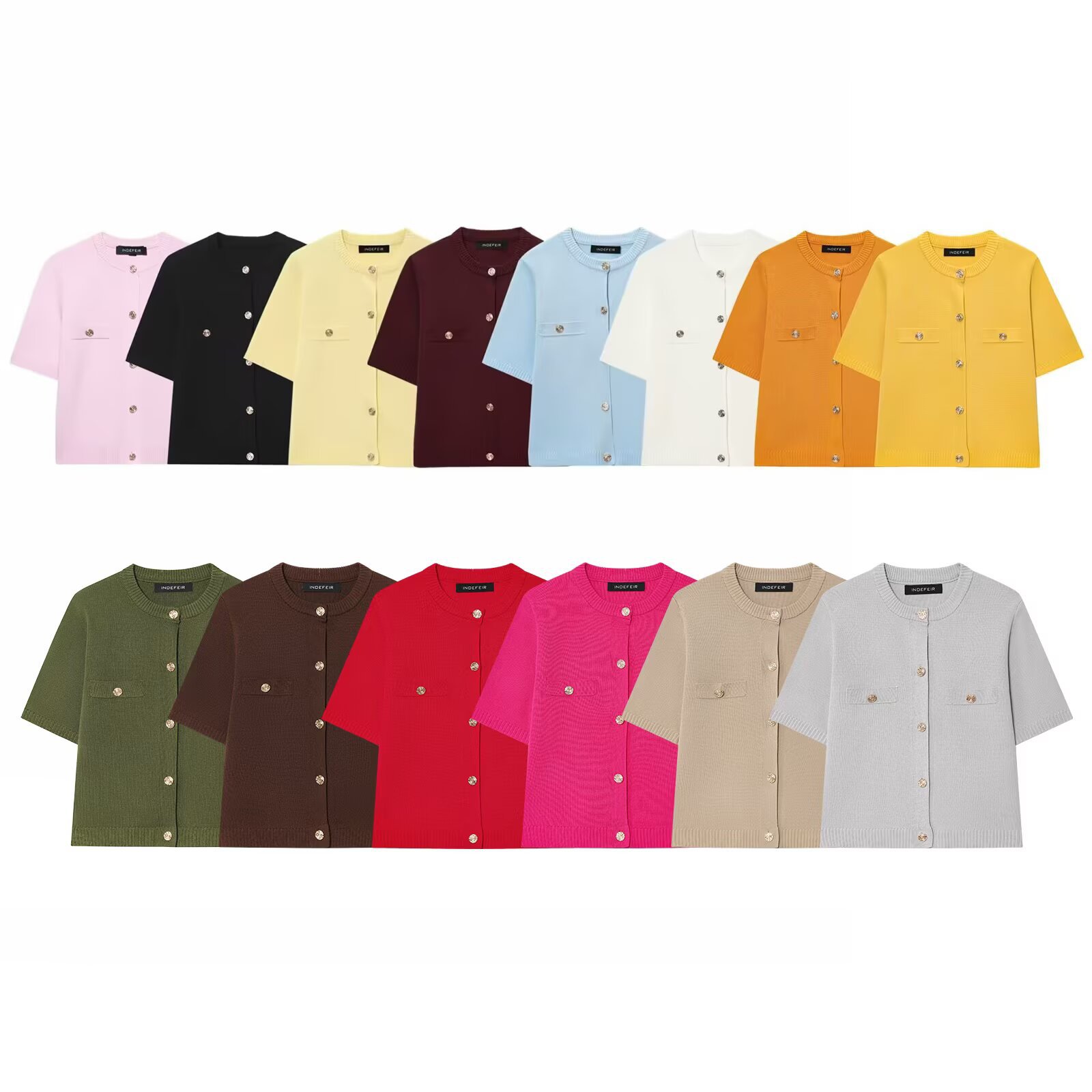 ヨーロッパとアメリカのクロスボーダーレディースファッション卸売、メタルボタンカーディガンセーター、ヨーロッパとアメリカンスタイル、長袖、スリム、カジュアル、多用途