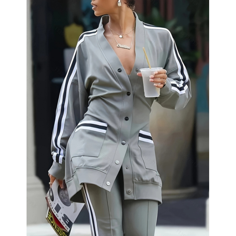 2025欧美跨境外贸秋季新款女士长裤长袖简约外穿时尚休闲套装V 领