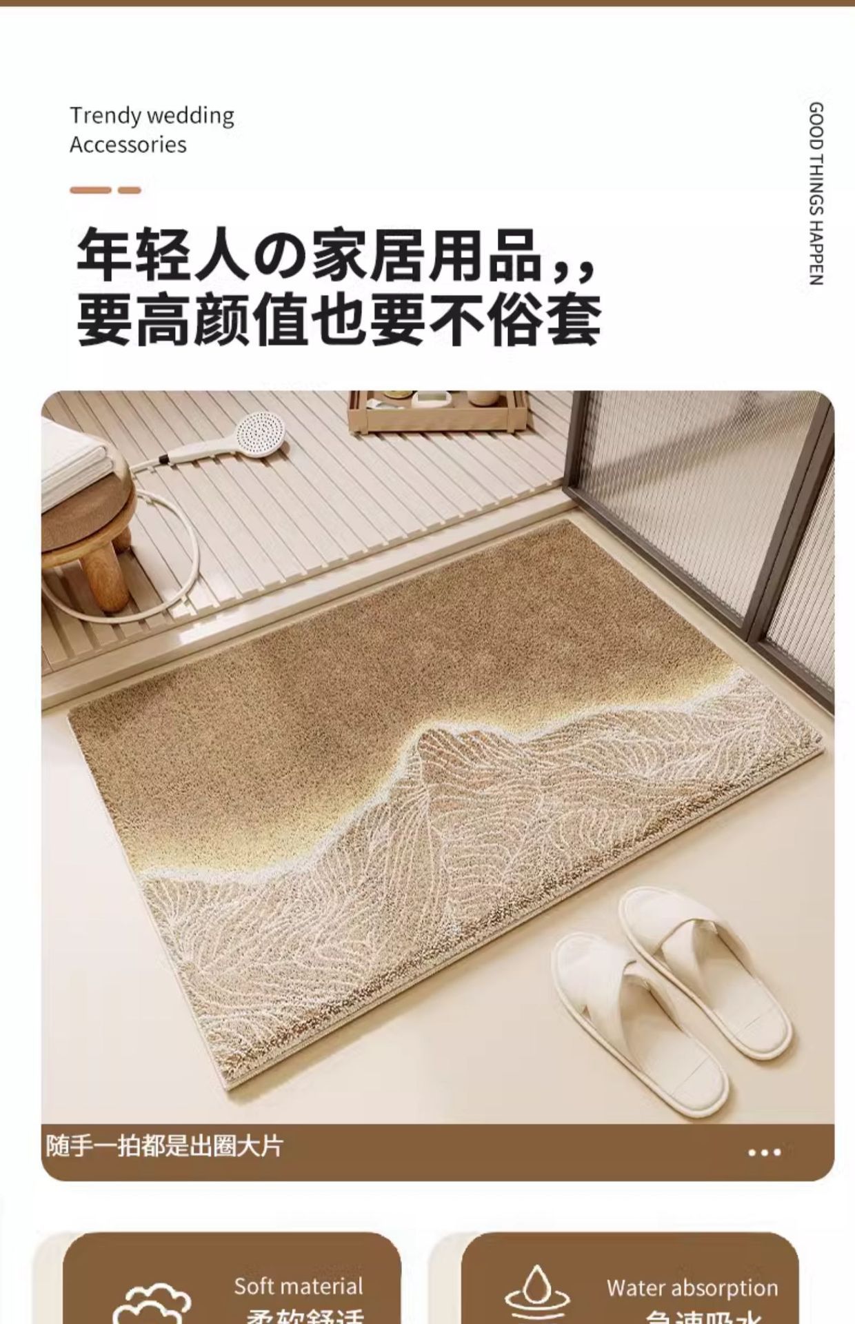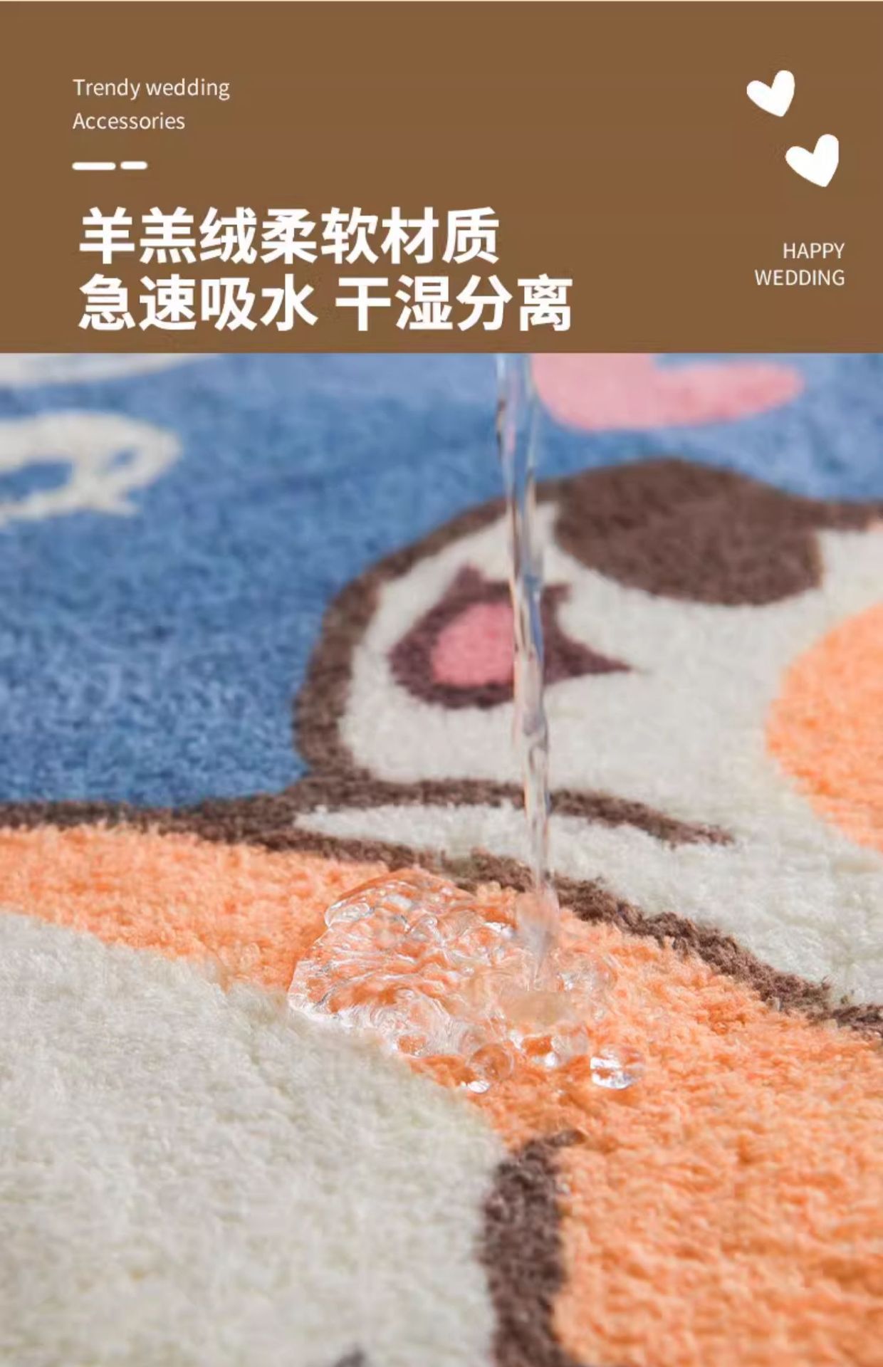 アニメはカシミヤの浴室のマットに似せて、入り口に入るとすぐに吸水します。