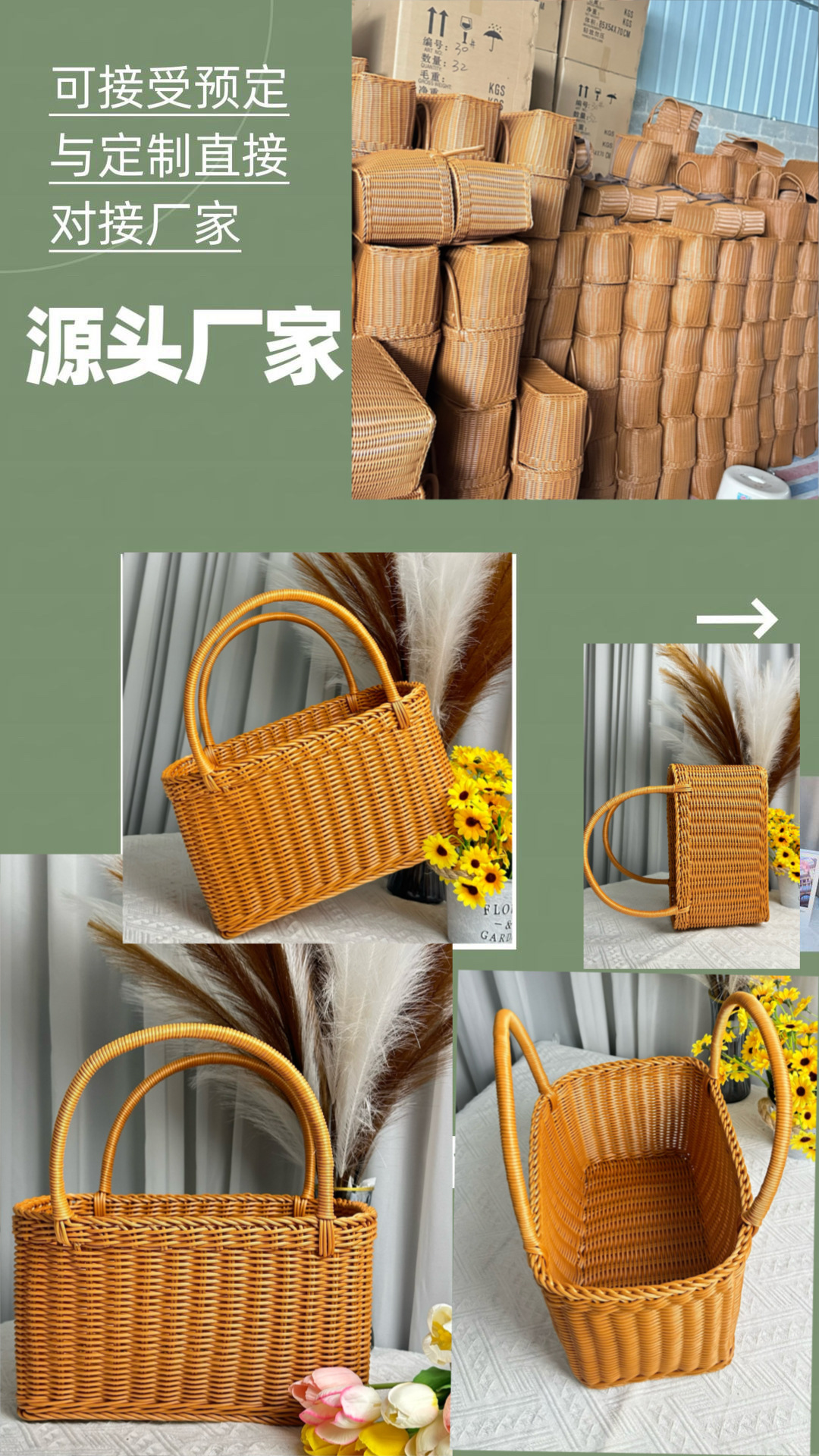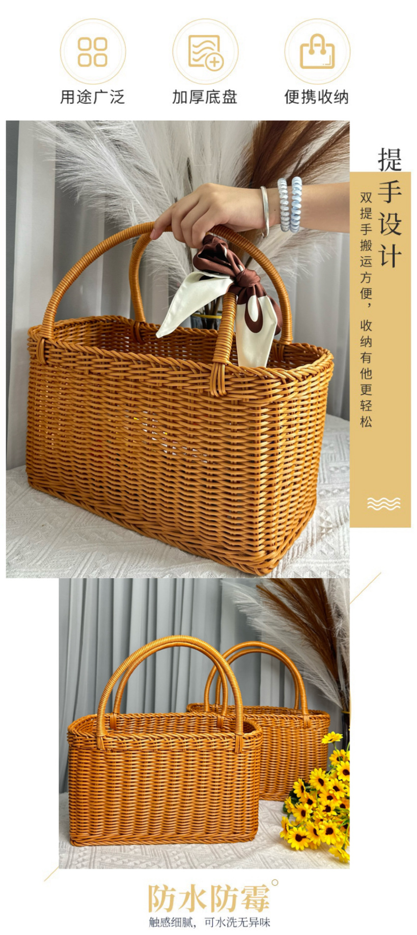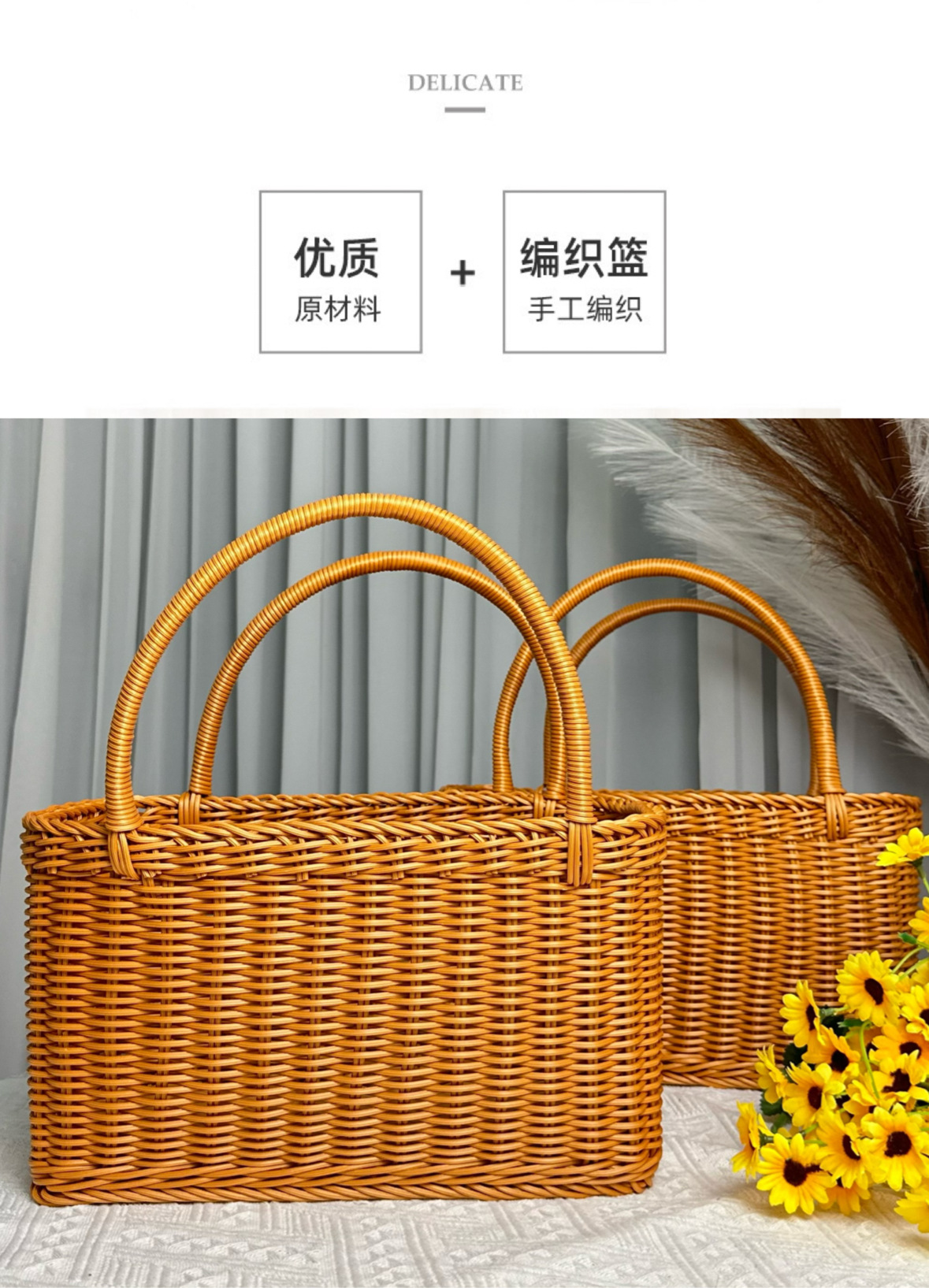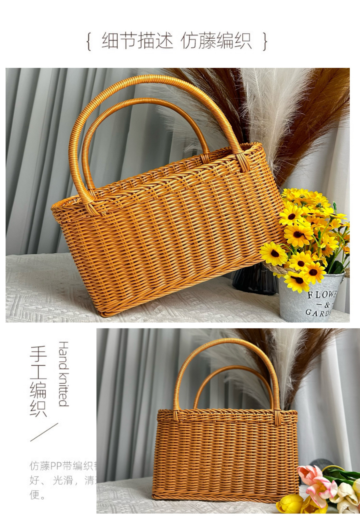 現物卸売りプラスチック編み野菜バスケット手提げバスケットお土産包装ハンドバッグ女性模造藤バスケット