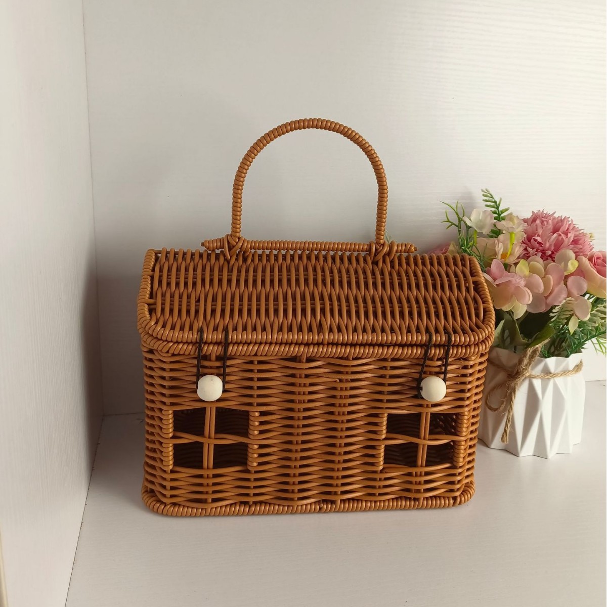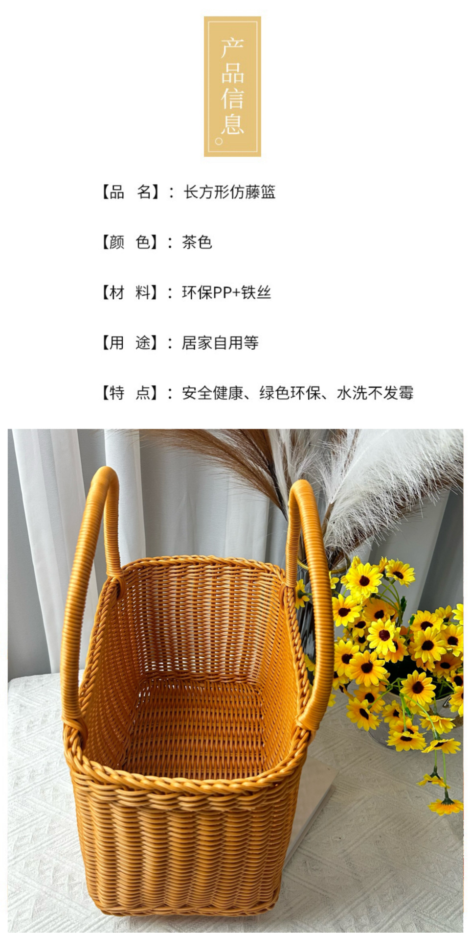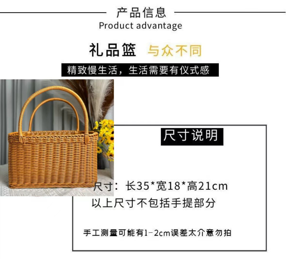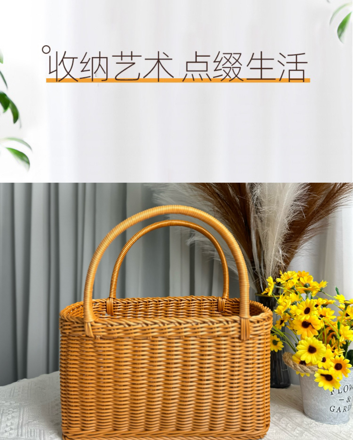 現物卸売りプラスチック編み野菜バスケット手提げバスケットお土産包装ハンドバッグ女性模造藤バスケット