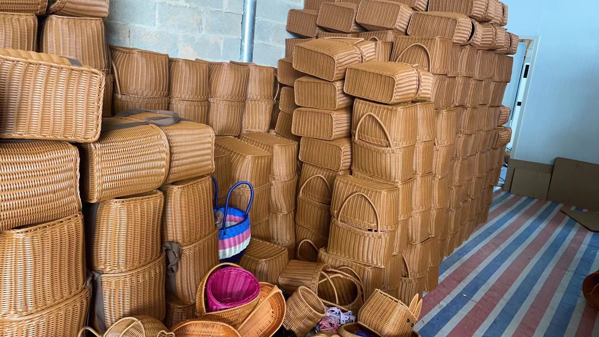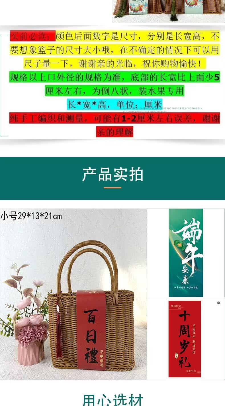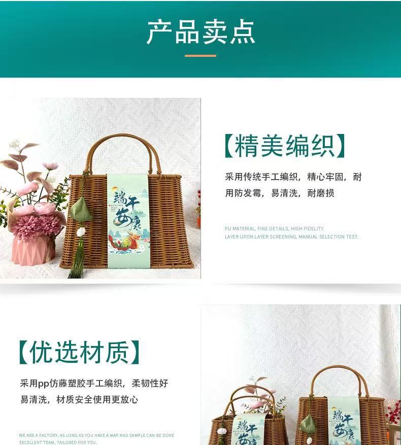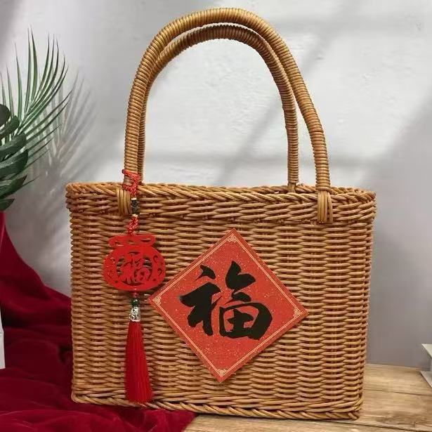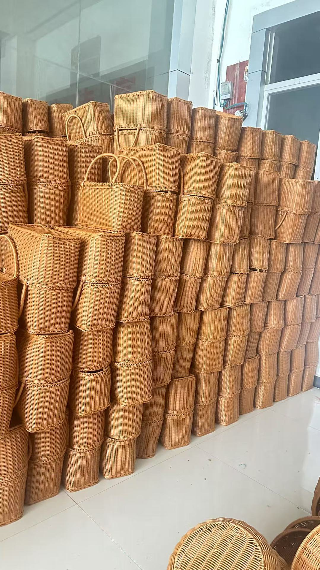 現物卸売りプラスチック編み野菜バスケット手提げバスケットお土産包装ハンドバッグ女性模造藤バスケット