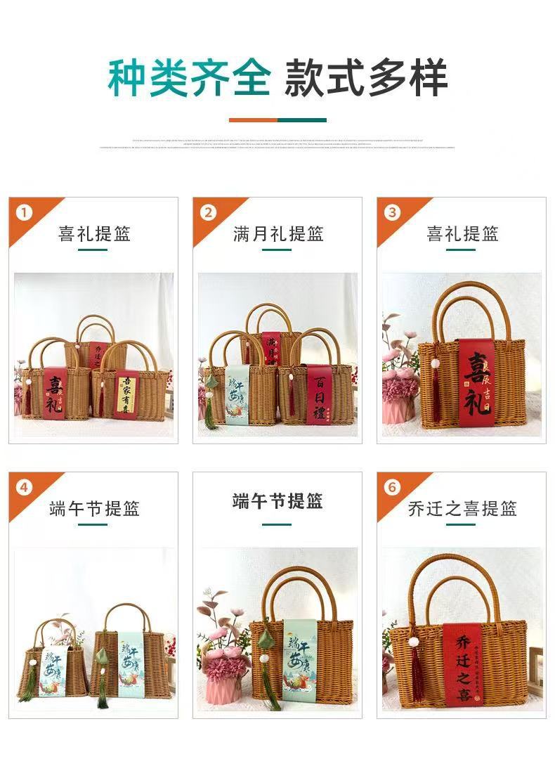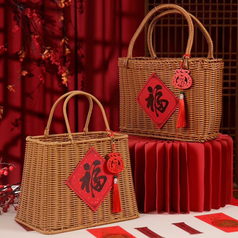 結婚式の贈り物、祝祭の包装、ブライズメイドのギフトボックス、新築祝いのハンドバッグ、結婚祝い、入学祝い、編み込みの手提げかご、収納