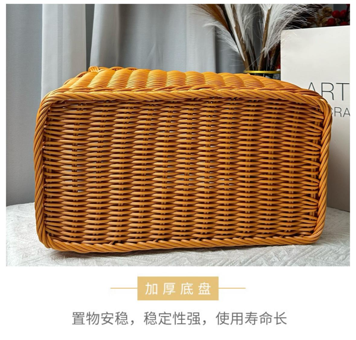 籐編みフルーツバスケットキャンディープレートパンバスケットスナックドライフルーツ野菜手作りプラスチック模造籐収納バスケット