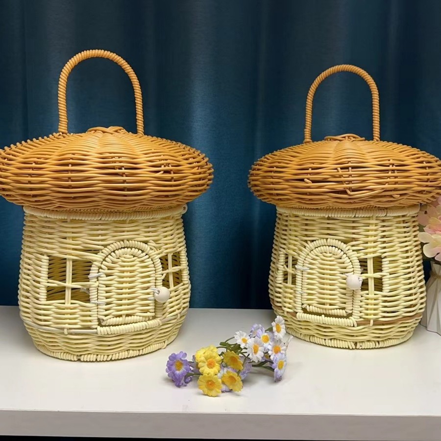 インスタイル手作り籐キノコ型収納ハンドバッグバスケット子供部屋の装飾撮影小道具