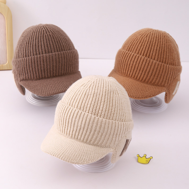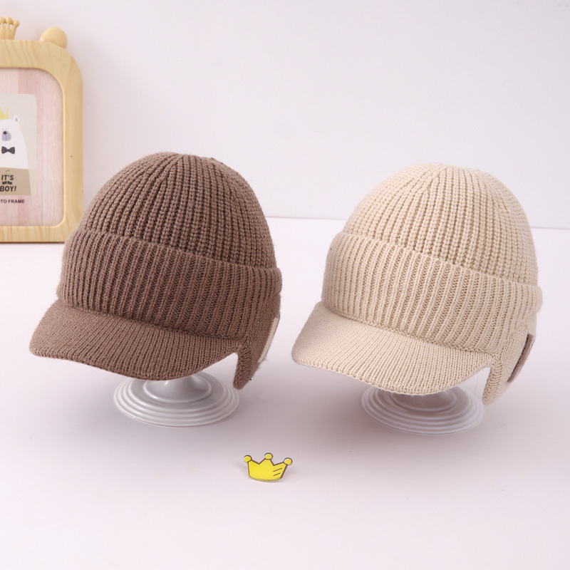 秋冬の子供のアヒルの舌の帽子の男女の子供の耳の毛糸のメリヤスの韓国版の保温の野球の帽子は厚い防風の頭をかぶせます。