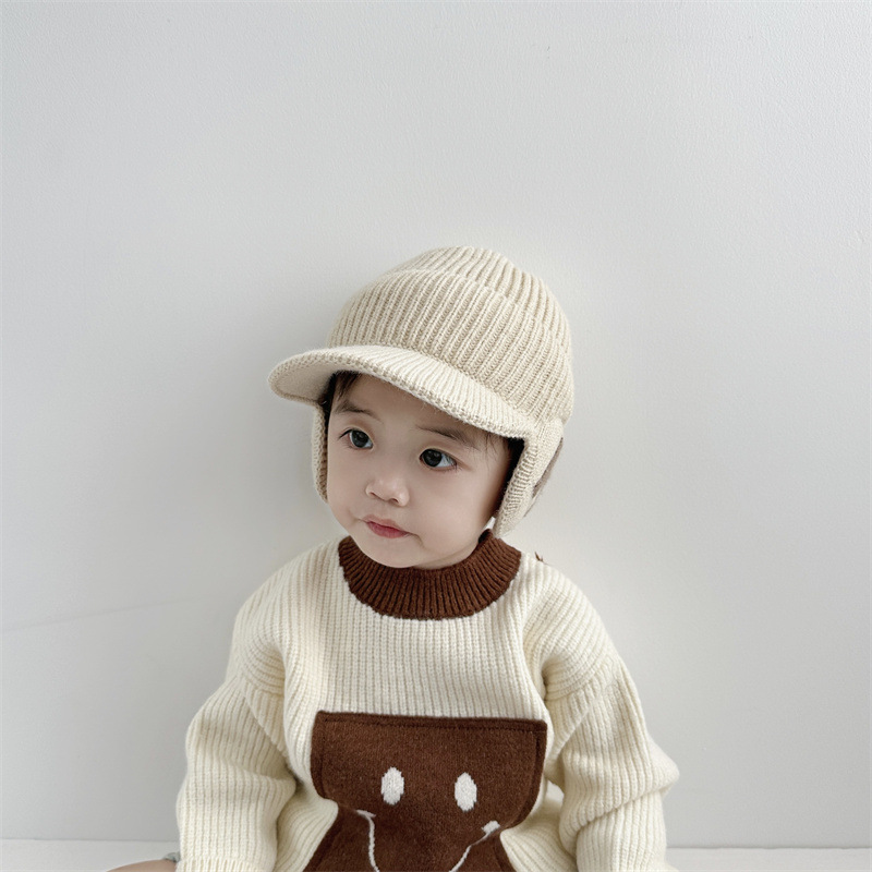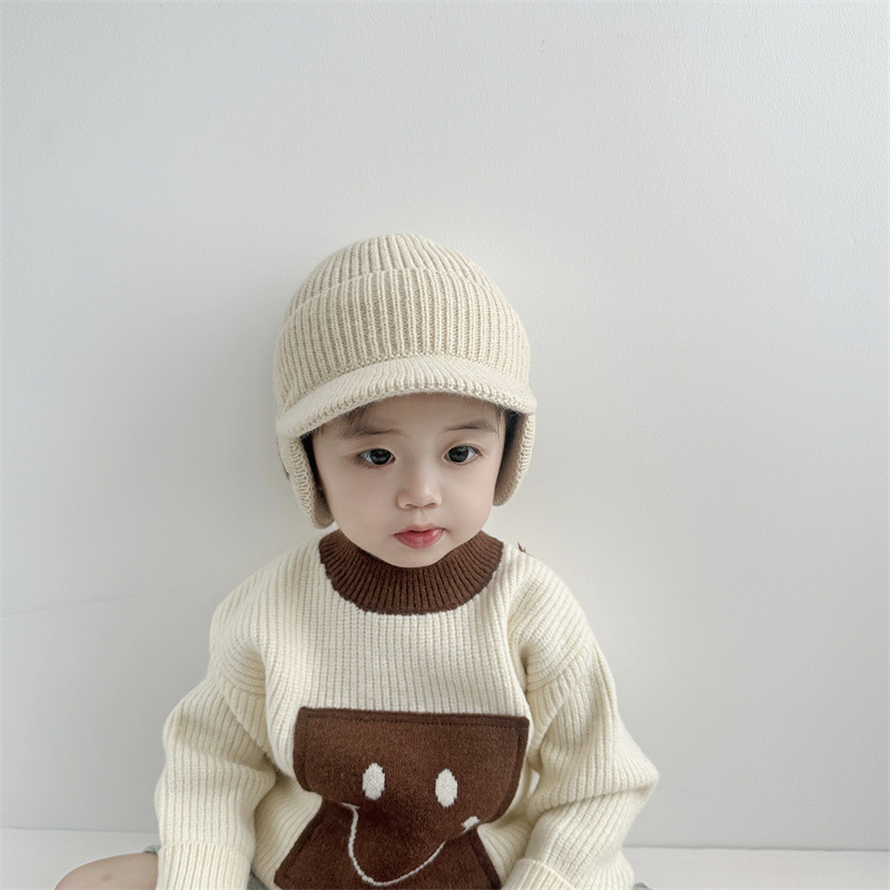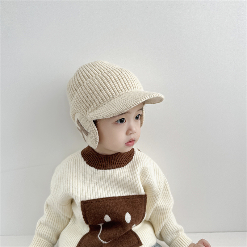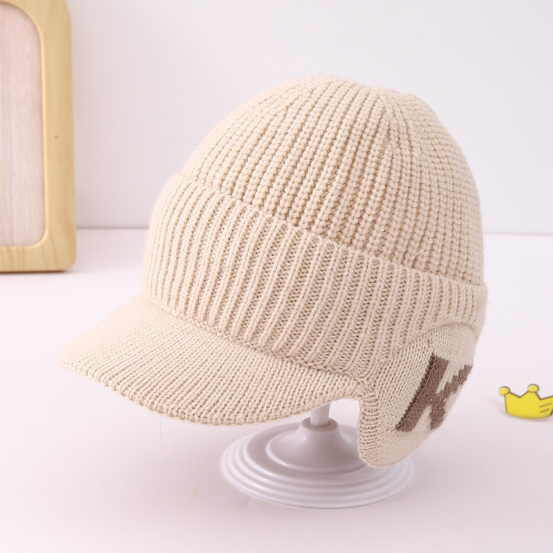 韓国版保温防寒耳保護帽アルファベットKトレンドシンプル純色毛糸ニット赤ちゃん帽子ins風子供帽子