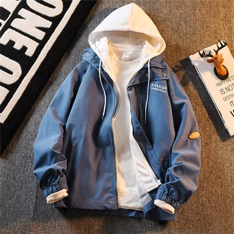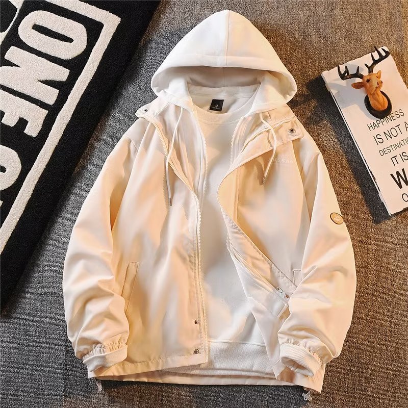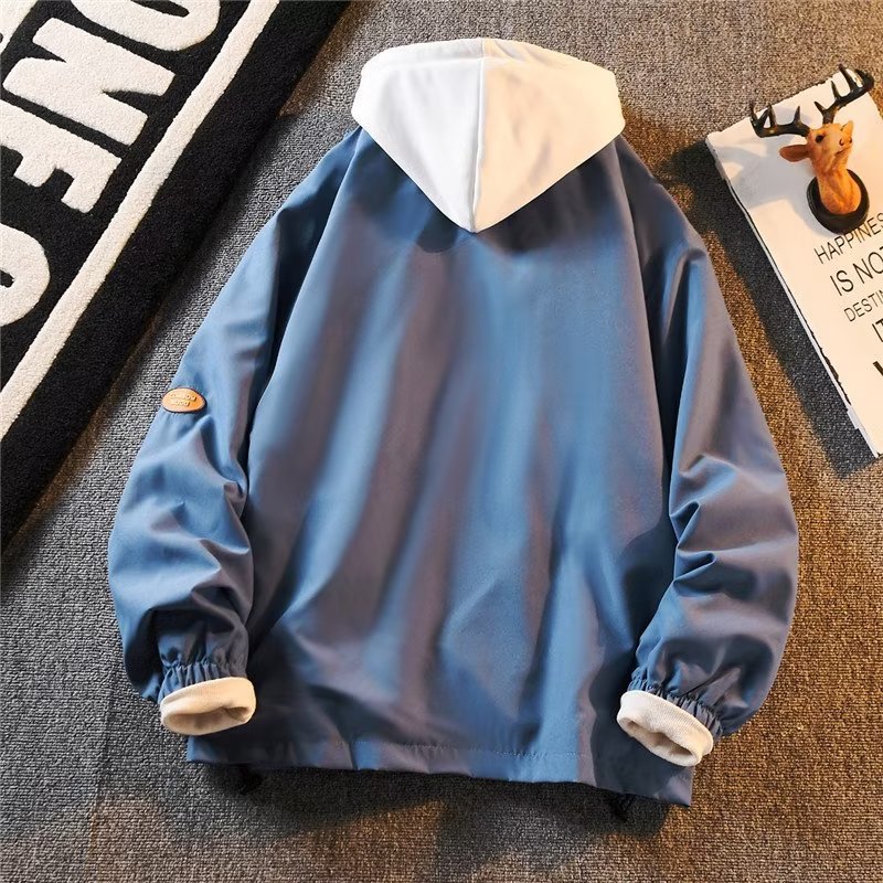 夏のフード付きデニムジャケットメンズ韓国スタイルトレンディカジュアル多用途トップス春と秋のカップル偽ツーピースジャケット
