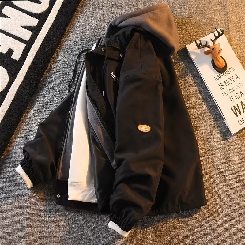 アメリカの偽の2つの帽子のコートの男性の潮のブランドの2024春秋の項のゆったりしているレジャーのスーツのジャケットの男性の突撃服