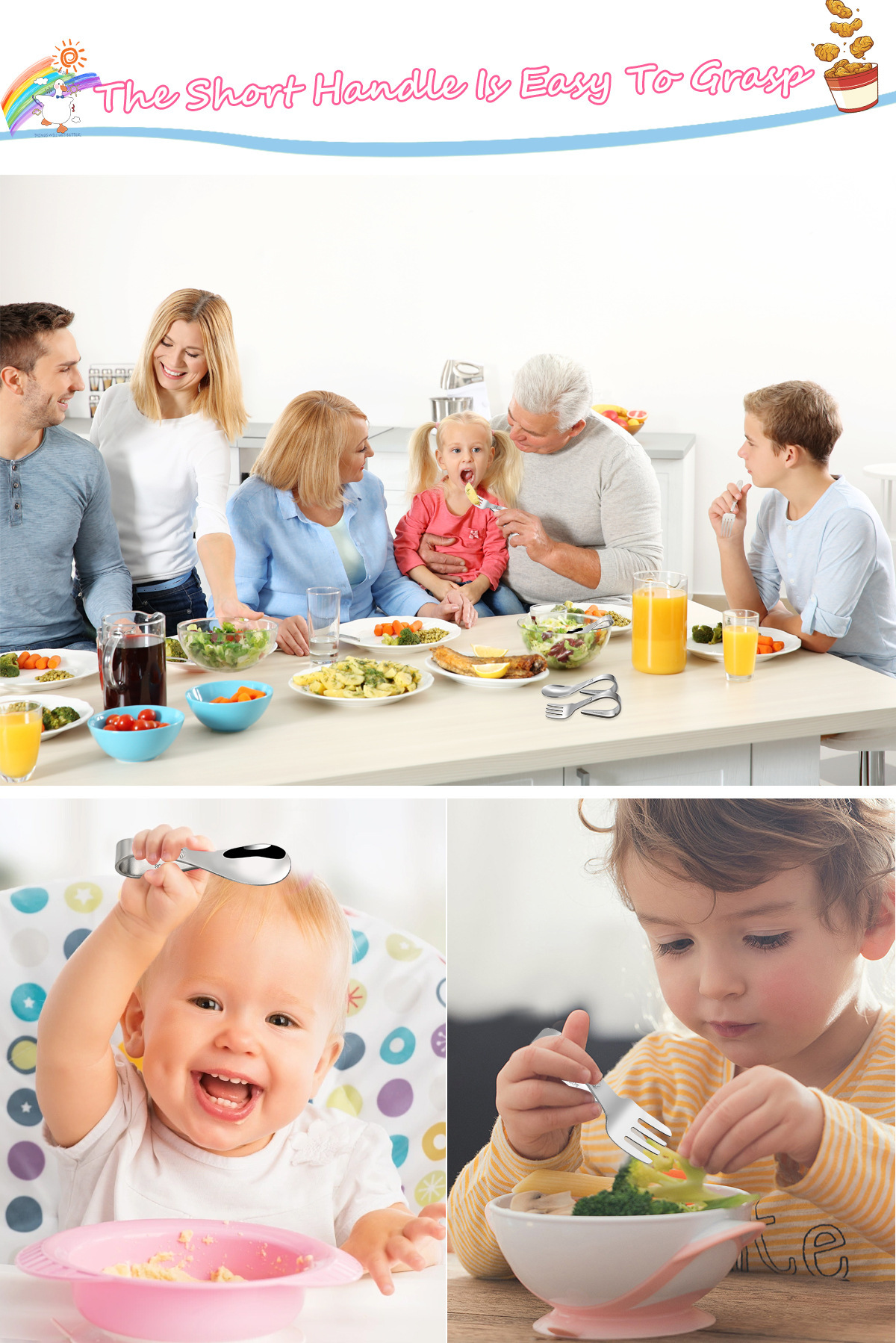 曲げフォークスプーン304ステンレスの赤ちゃんの短い柄の携帯子供の食器セットの補助食品の漫画のフォークスプーンの全鋼