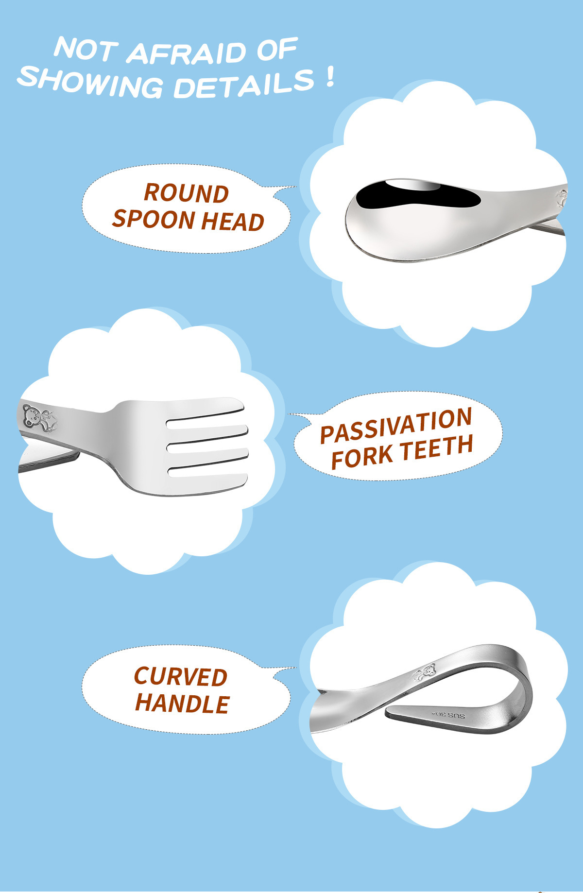 クロスボーダー304ステンレス子供スプーンフォーク3点セット曲げハンドル赤ちゃん訓練食事スプーン携帯幼児食器