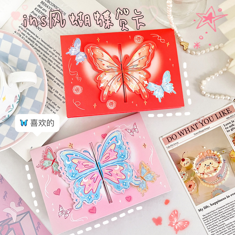 立体蝶グリーティングカードins高颜値レトロ3d折り畳み可能祝福カード封筒付き親友カップルプレゼント