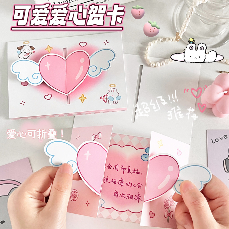 立体愛グリーティングカードins高颜値復古3d折り畳み可能祝福カード封筒付き親友カップルプレゼント