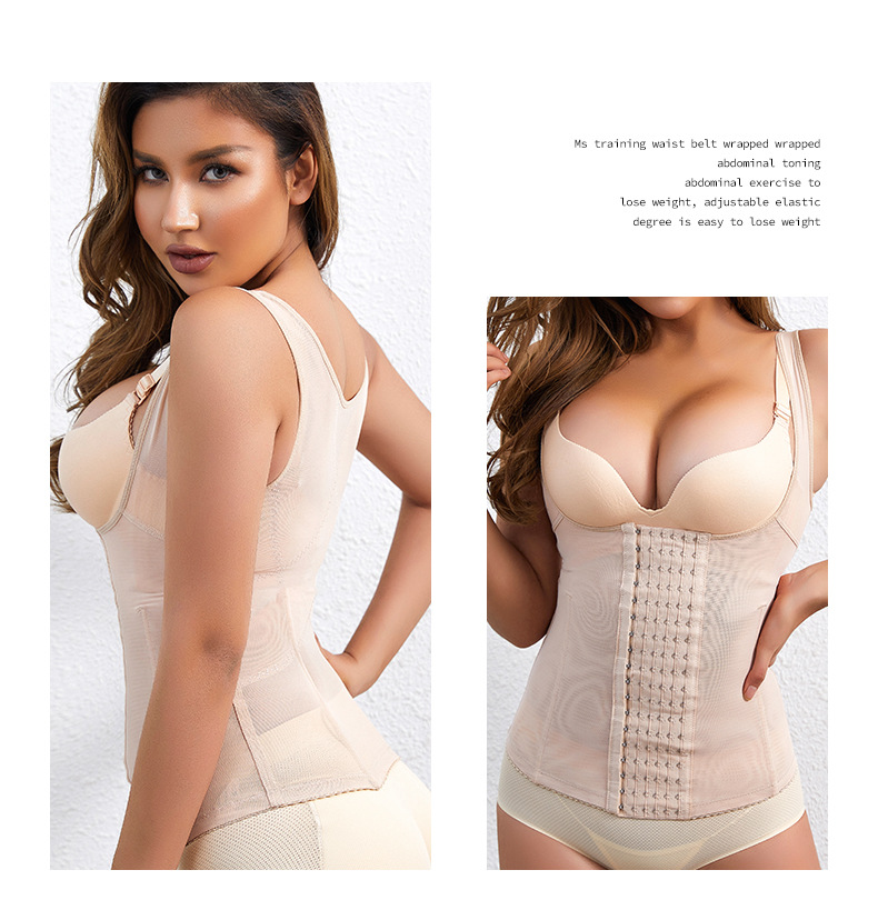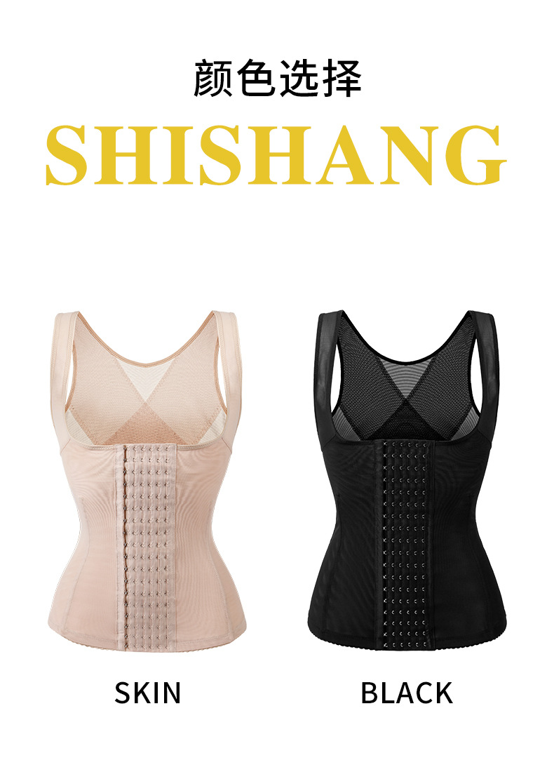 4色展開のメッシュ生地、15本の骨組みでサポート力のあるヨーロッパ風シェイプアップベスト、タイトフィットで体型を整えるウエストシェイパー、お腹を引き締めるシェイプウェア、越境販売、在庫あり。