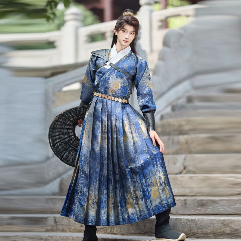 オリジナルの新型2025春夏漢服晋製グラデーション刺繍セット男女モデルプリント復古中国風古着