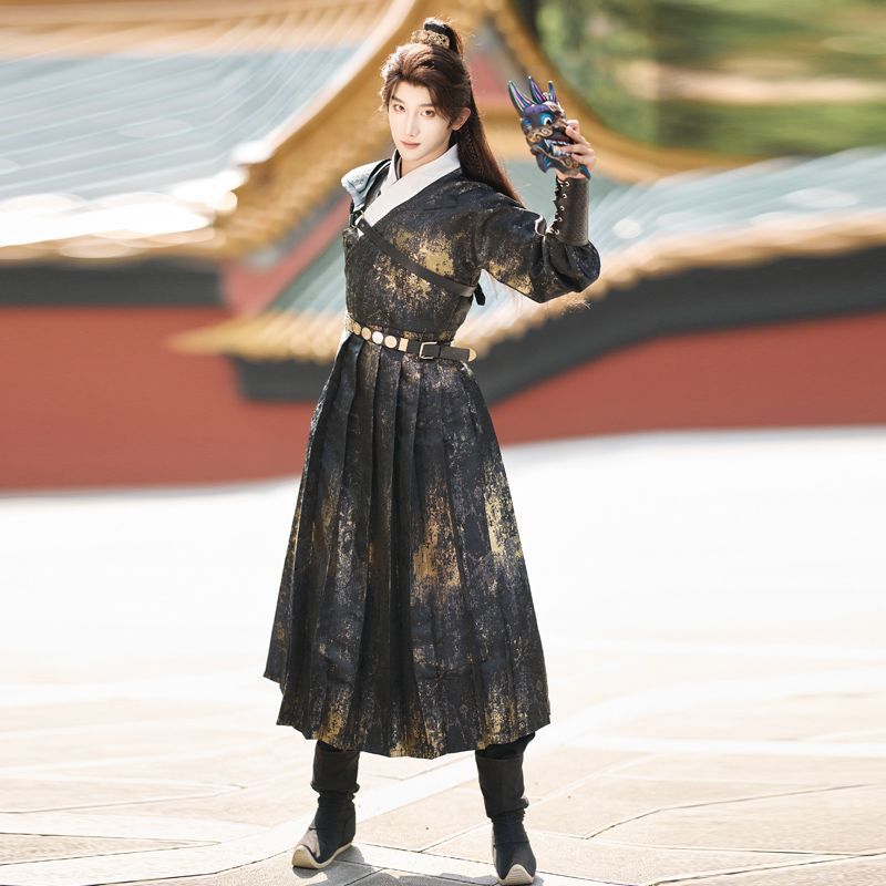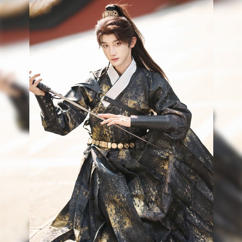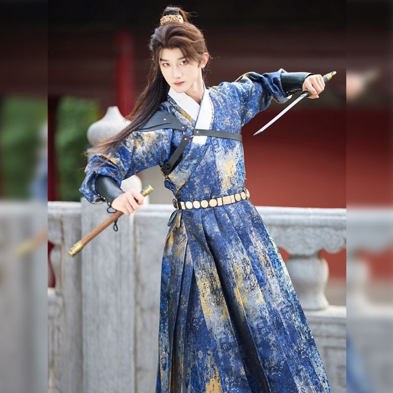 オリジナルの宋製侠客漢服男女CP同タイプのクール颯武侠時代劇本殺COS交襟長シャツセット