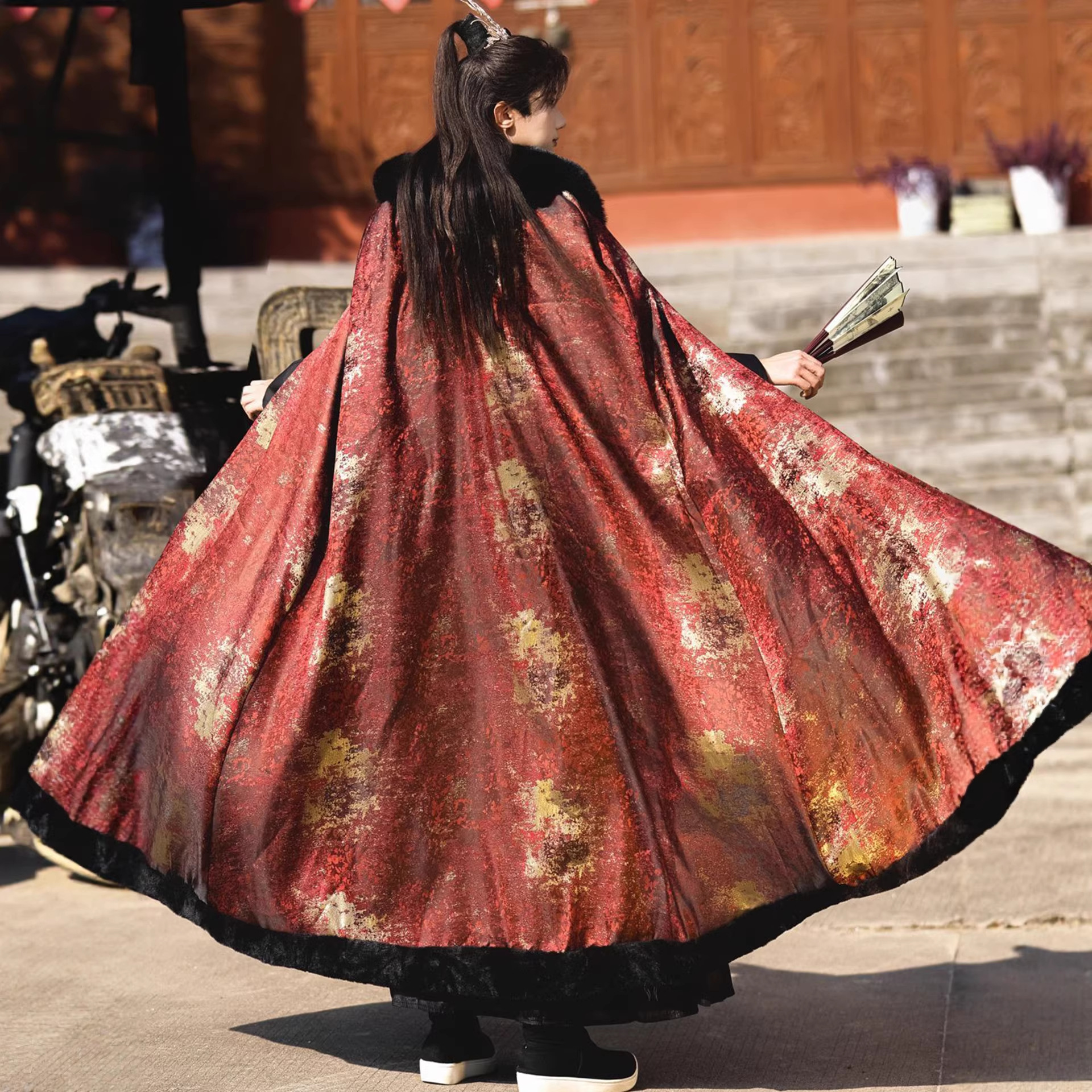 元の創明製の漢服の男女の同金の2024の新型の中国風の古風のマントの季節の新型のベルベットの保温の大鉢