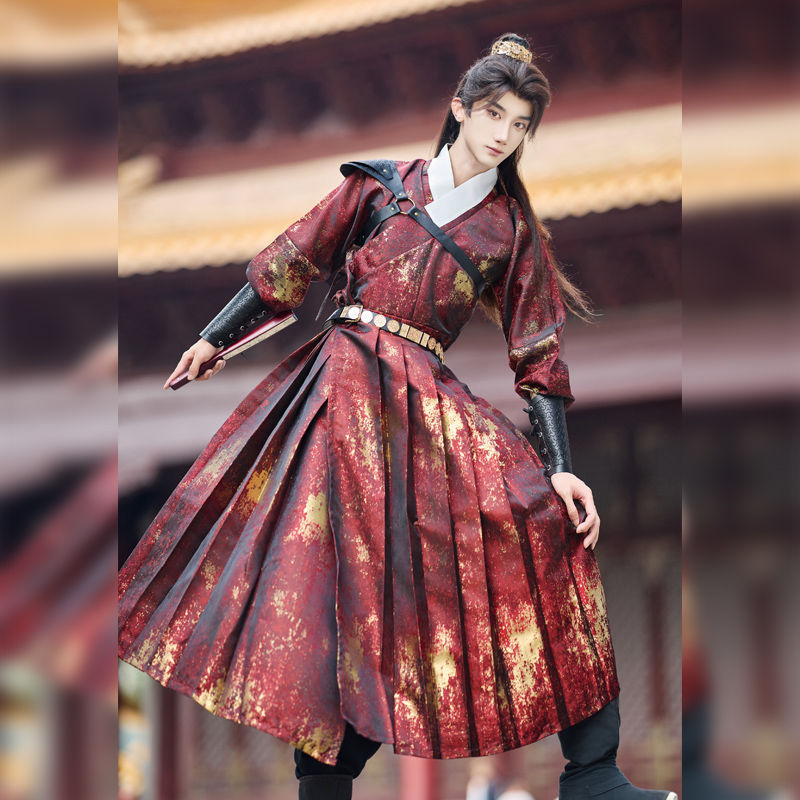 オリジナルの漢服の女性のホーテのスカートの唐製の胸の1枚のメンズのスカートの刺繍の大きい袖のシャツの中国風の春の夏のスーツ