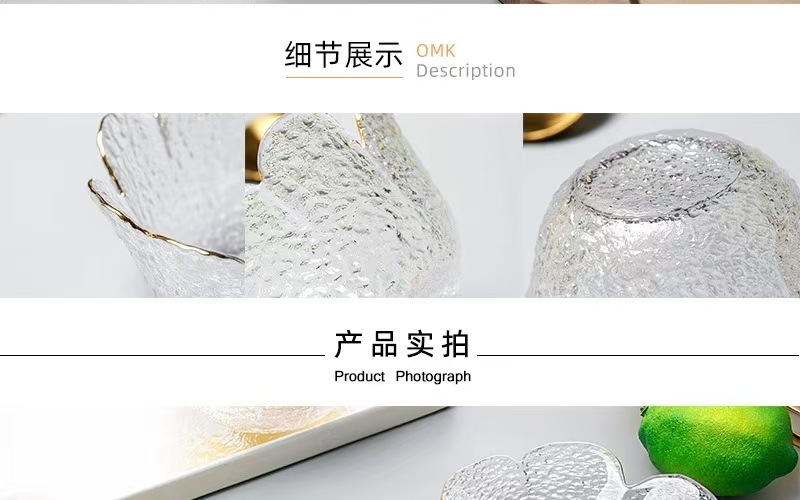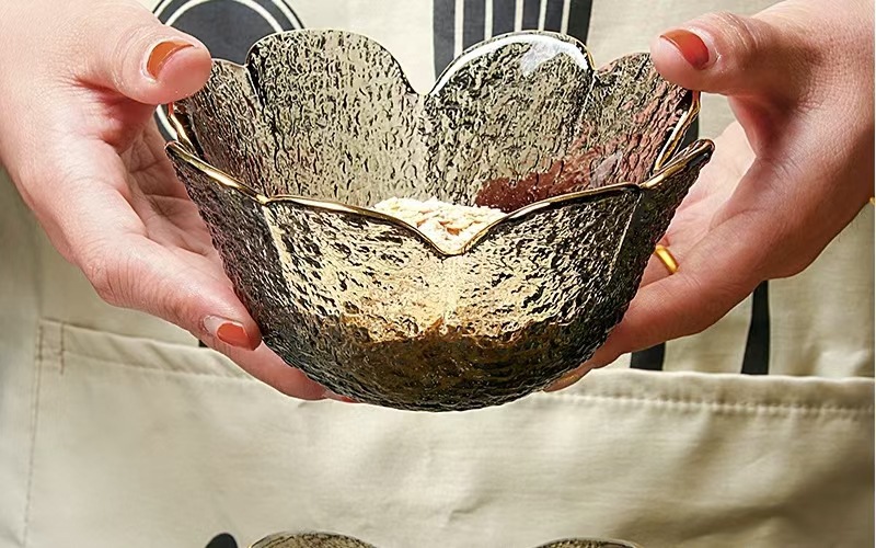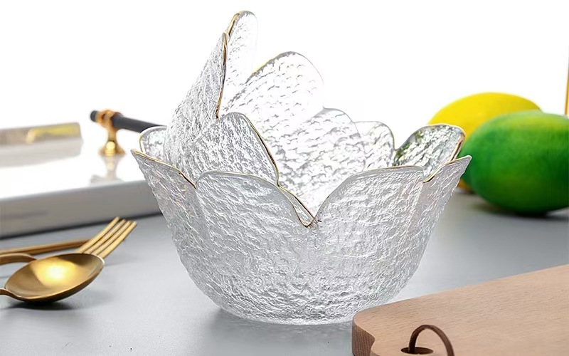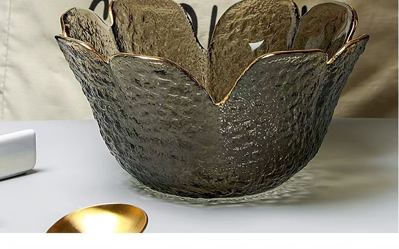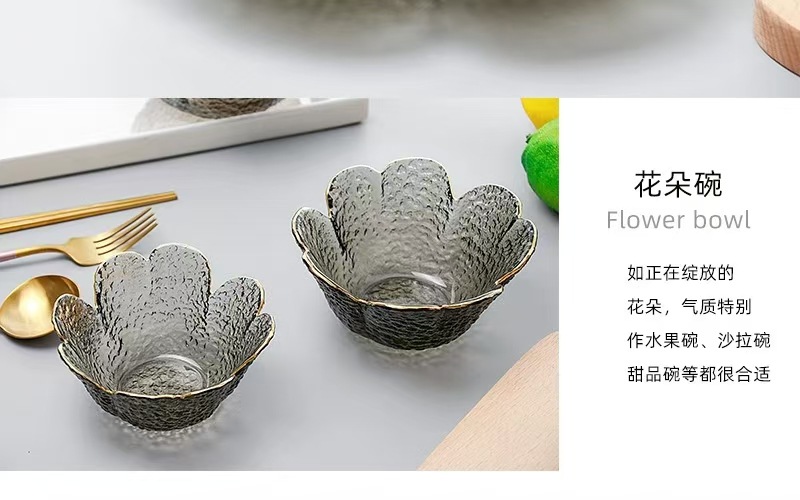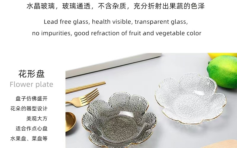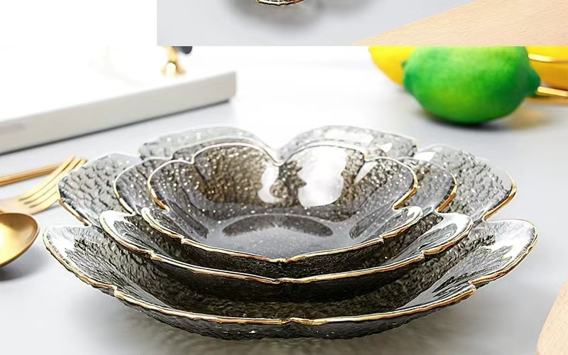 日本風ハンマー金縁ガラスボウル四葉草花びら皿insクリエイティブサラダボウル果物皿セット家庭用食器