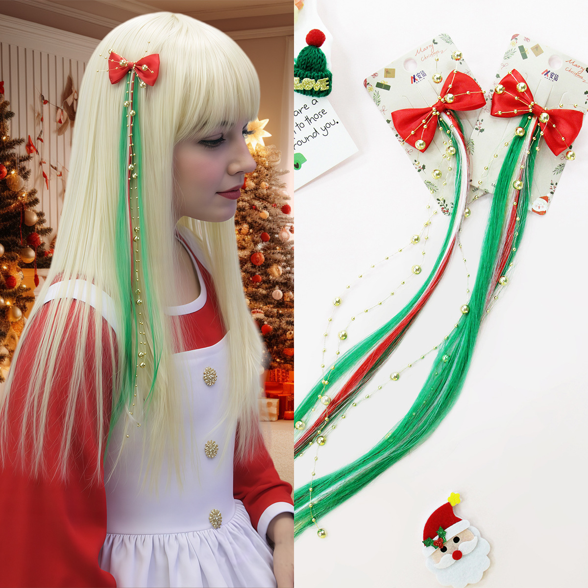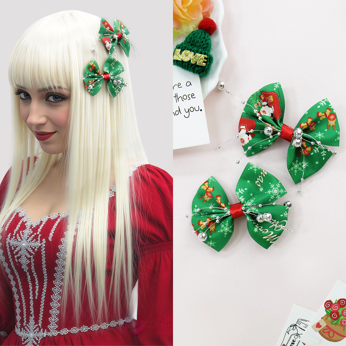 跨境圣诞节假发装扮发夹头饰鸭夹蝴蝶结发卡舞会派对发饰饰品