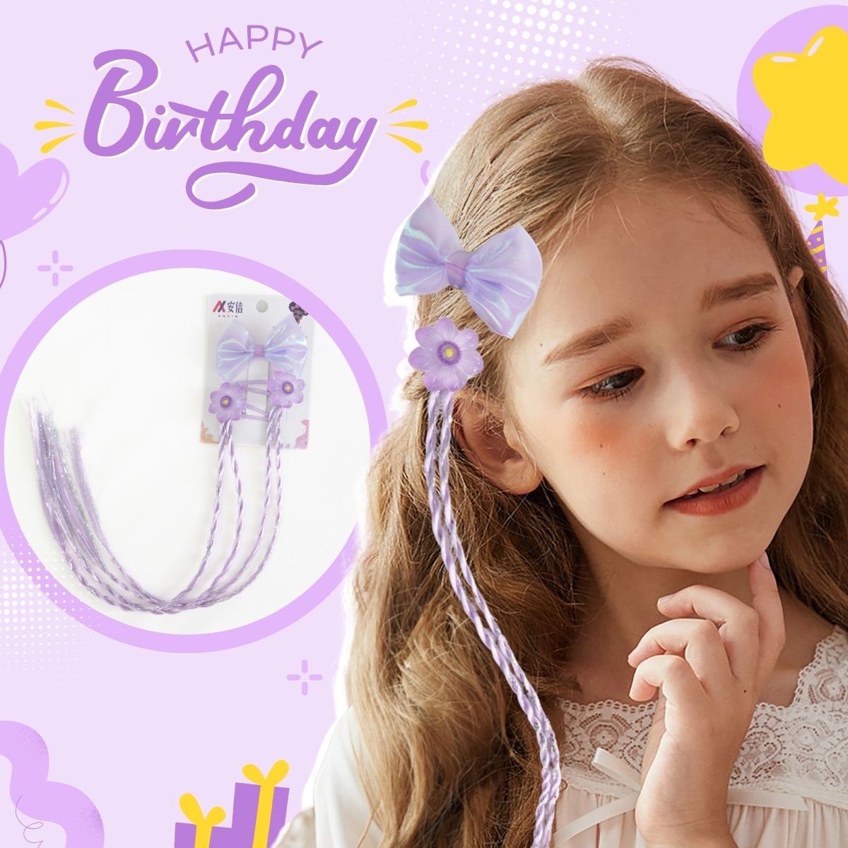 新しい子供の王女のスミレの蝶結びのヘアピンの紫色の花の髪飾りの閃光のお下げの女の子の髪飾り