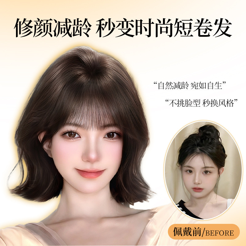 假发全头套女蓬松自然仿真发法式修饰脸型减龄外翻卷发短发假发套