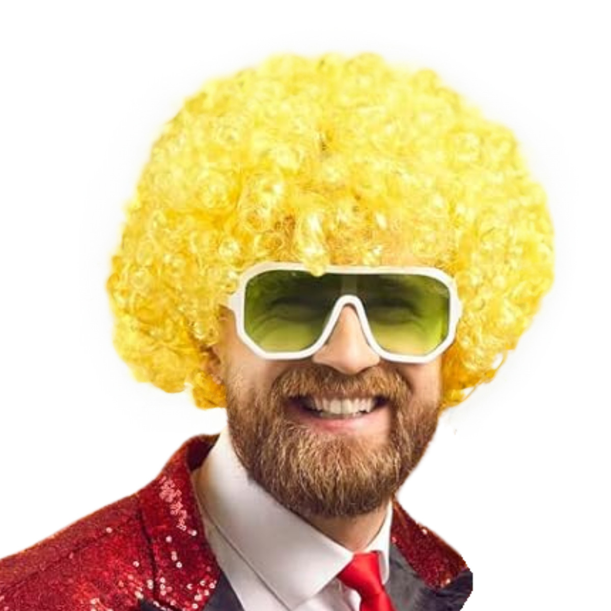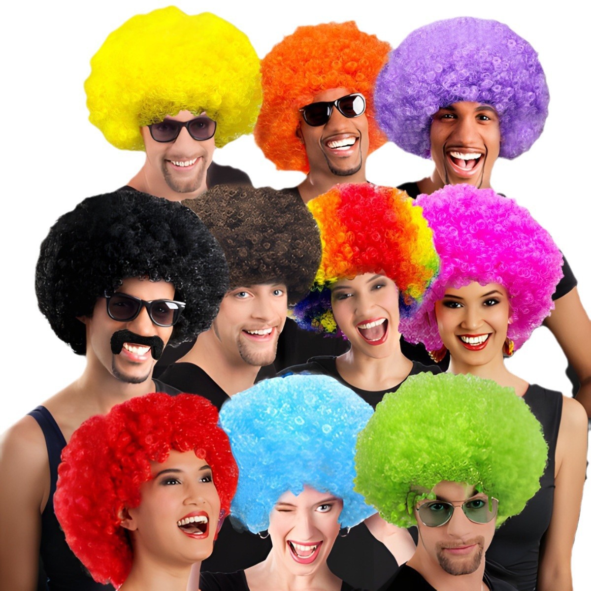 カラー爆発頭かつらパーティーでおかしなお笑い衣装を披露します。