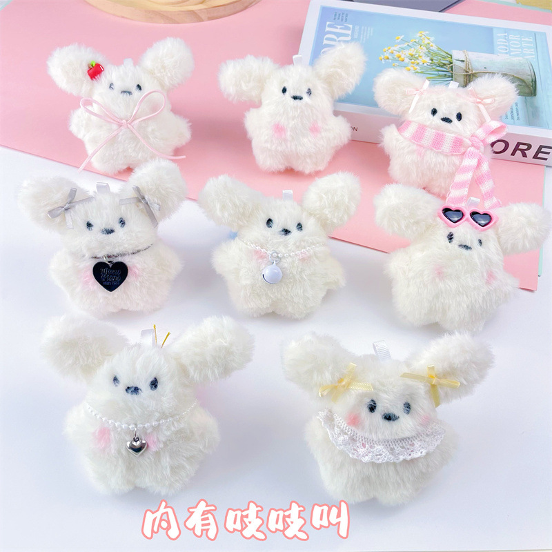ぬいぐるみクリエイティブ人形、メガネをかけたブラッシュカラーのウサギのペンダント、パール付き子犬のぬいぐるみ、バッグキーホルダー、卸売
