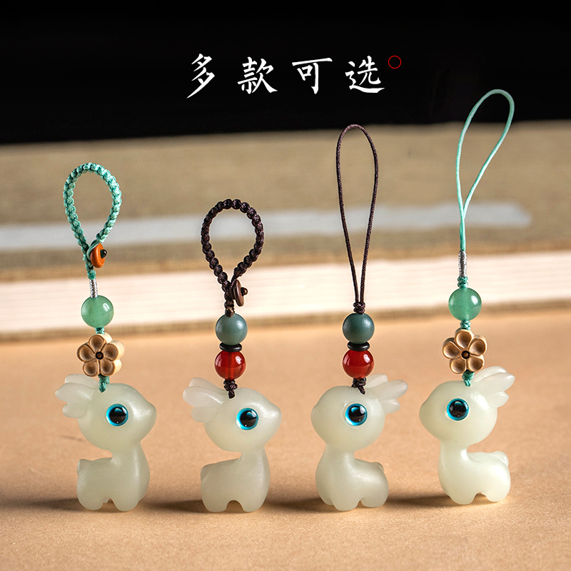 天然の白い水晶の携帯電話のチェーンの文芸の清新な中国風の手の精編の精巧な鍵のボタンのuディスクの手首の掛け物