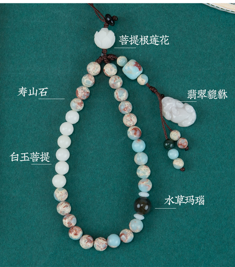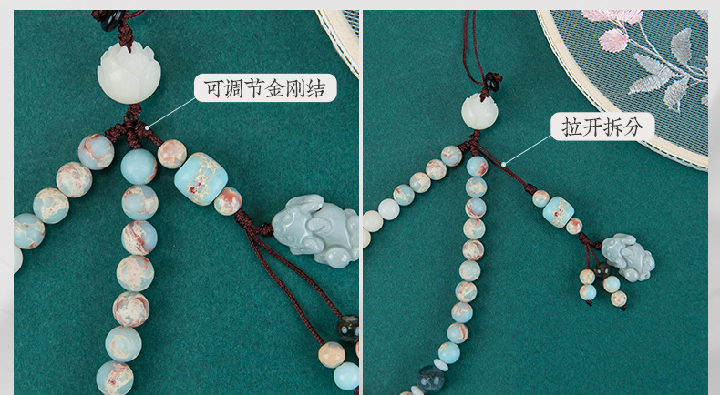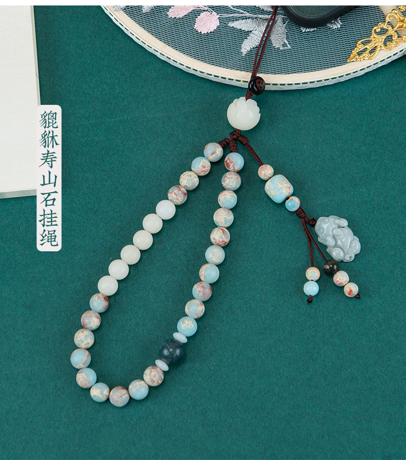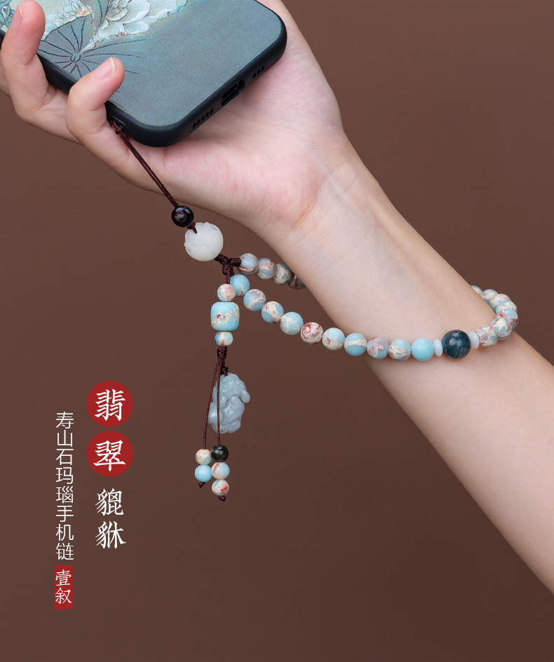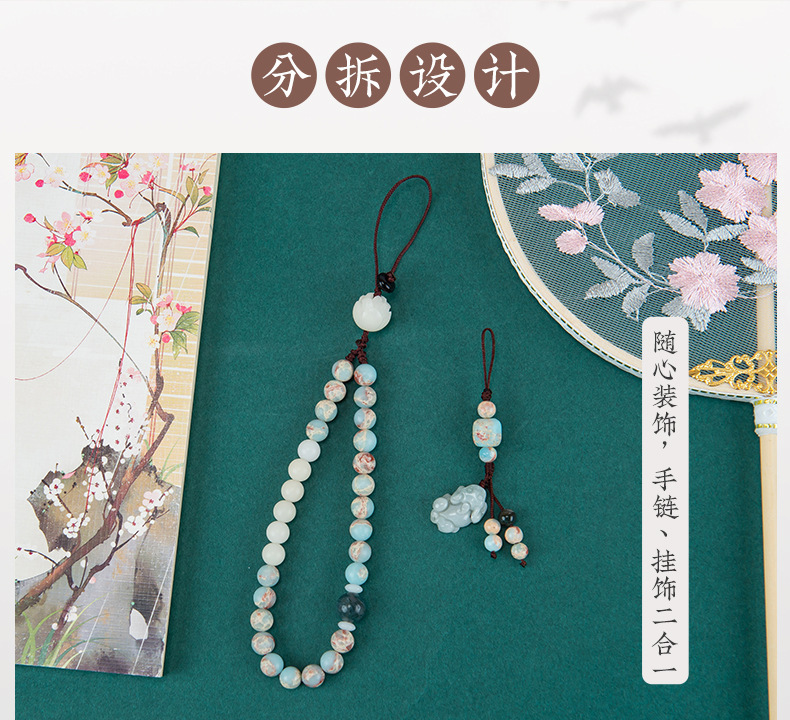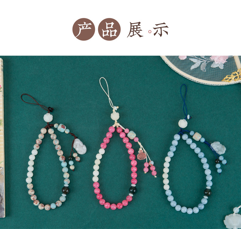 携帯ストラップオリジナル禅意国風緑檀木数珠携帯チェーン十二生肖ストラップ男女