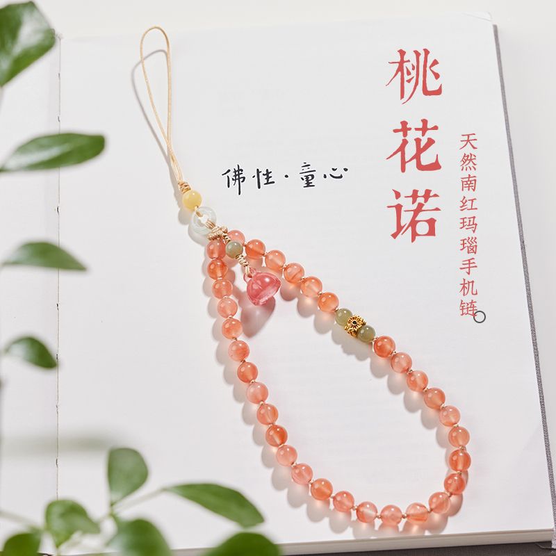 高級天然氷漂南紅携帯チェーン手作りビーズ清新文芸掛けアクセサリー手首掛け縄親友プレゼント