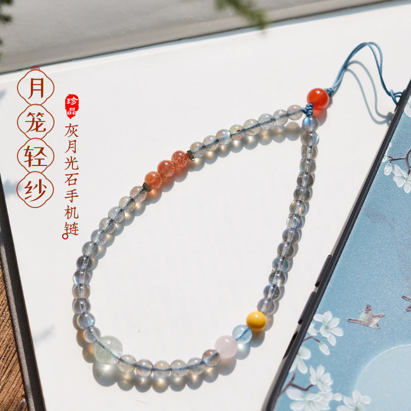 灰色の月の光の携帯電話のチェーンの精巧なins風の大衆の設計の携帯電話のひもの清新な手首の項の転倒防止のペンダントは飾ります。