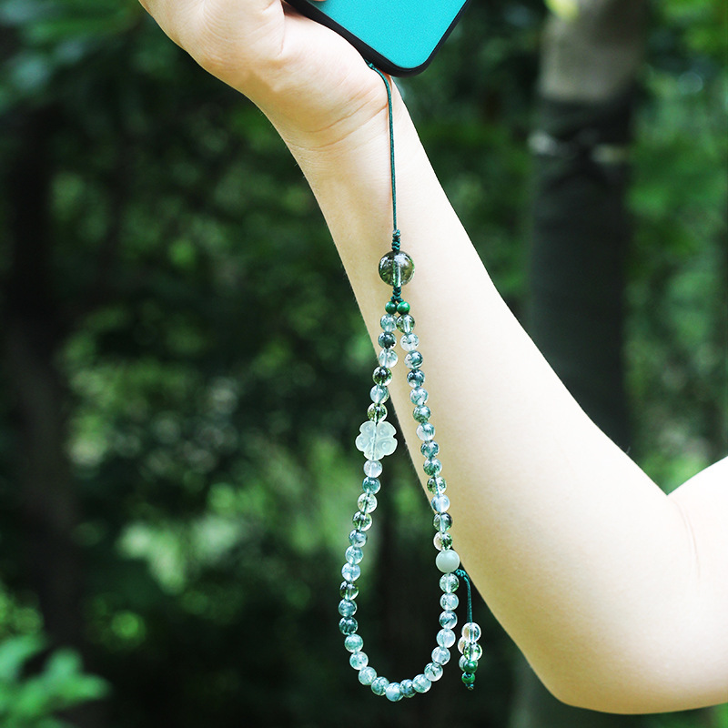 水草瑪瑙爆発結晶白水晶携帯チェーン6mmdiy女形菩提根翡翠アクセサリーシンプルアクセサリー