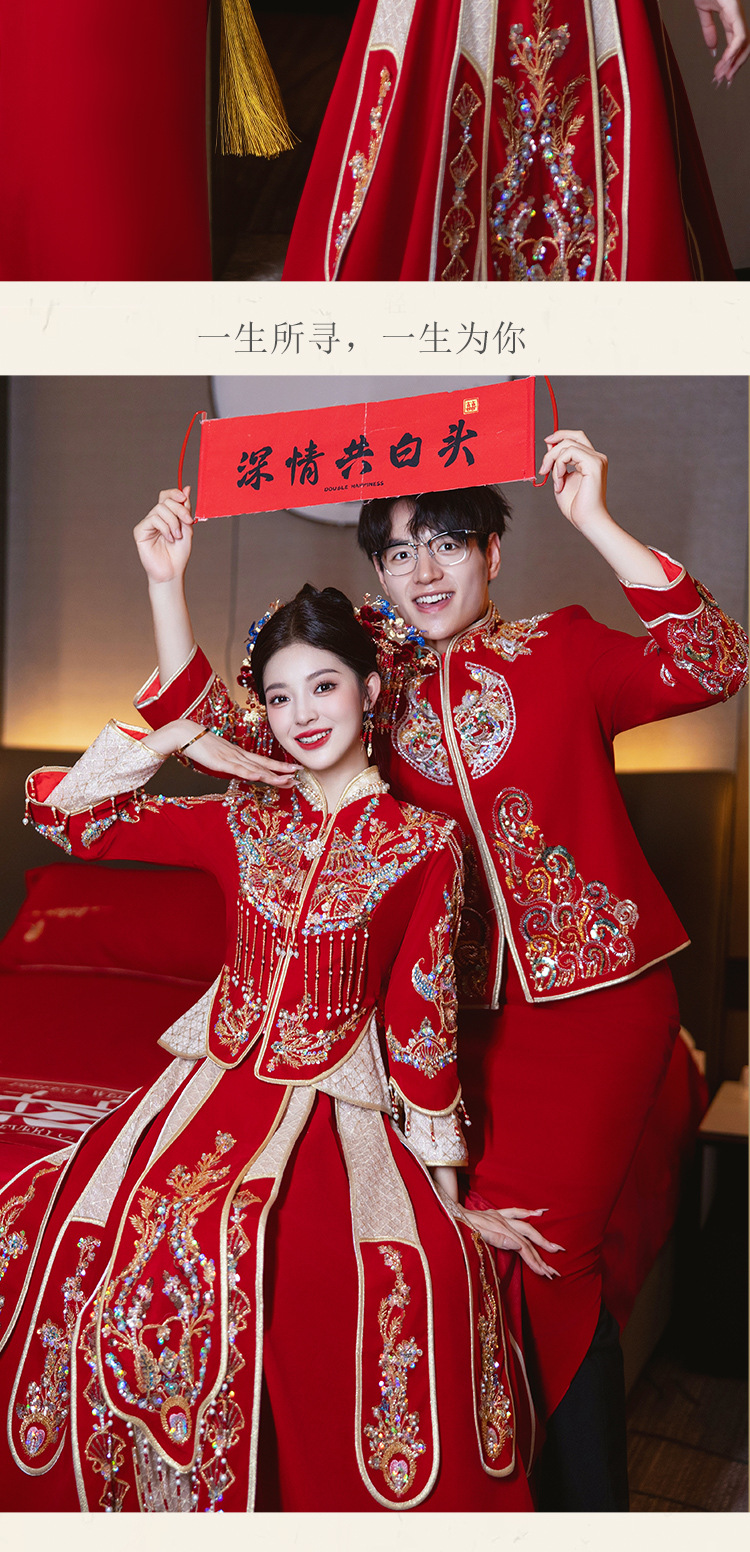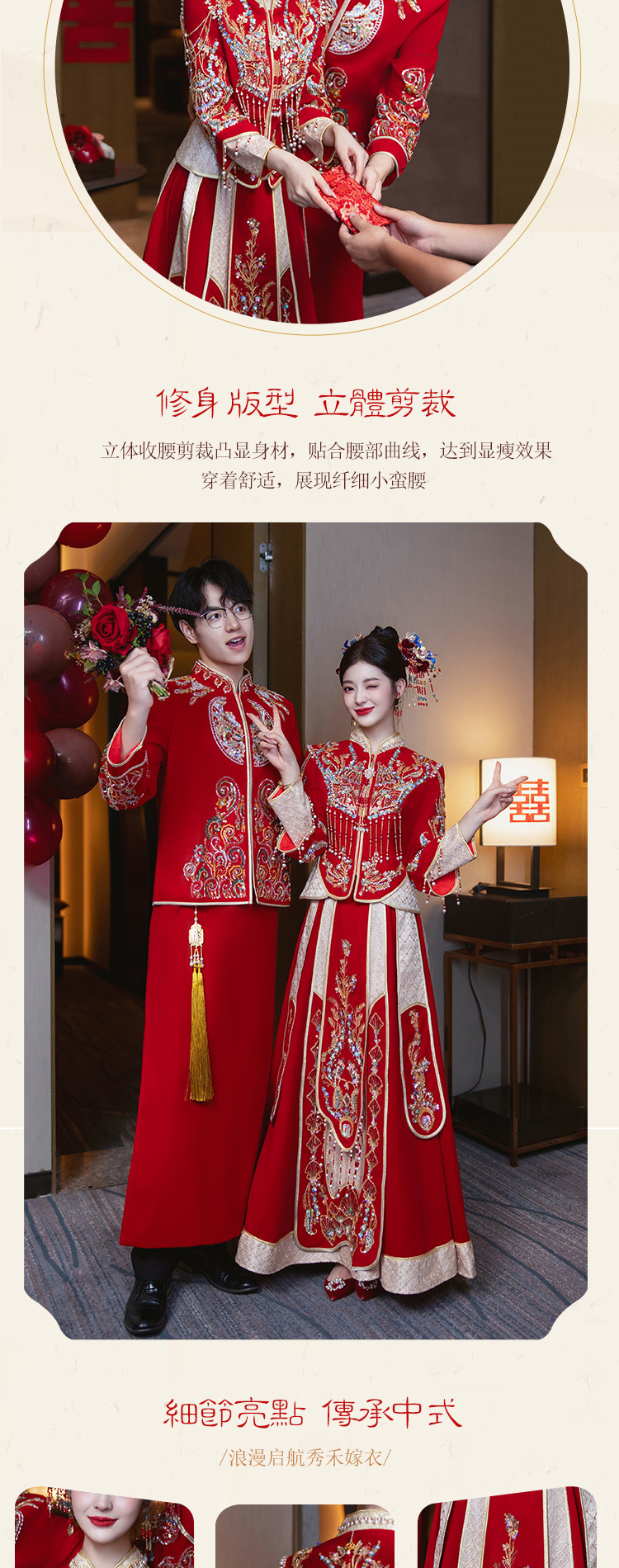 秀禾服 花嫁 2025年新作 中華風ウェディングドレス 小柄な方向け 結婚式乾杯ドレス 大きいサイズ カップル向け秀禾服