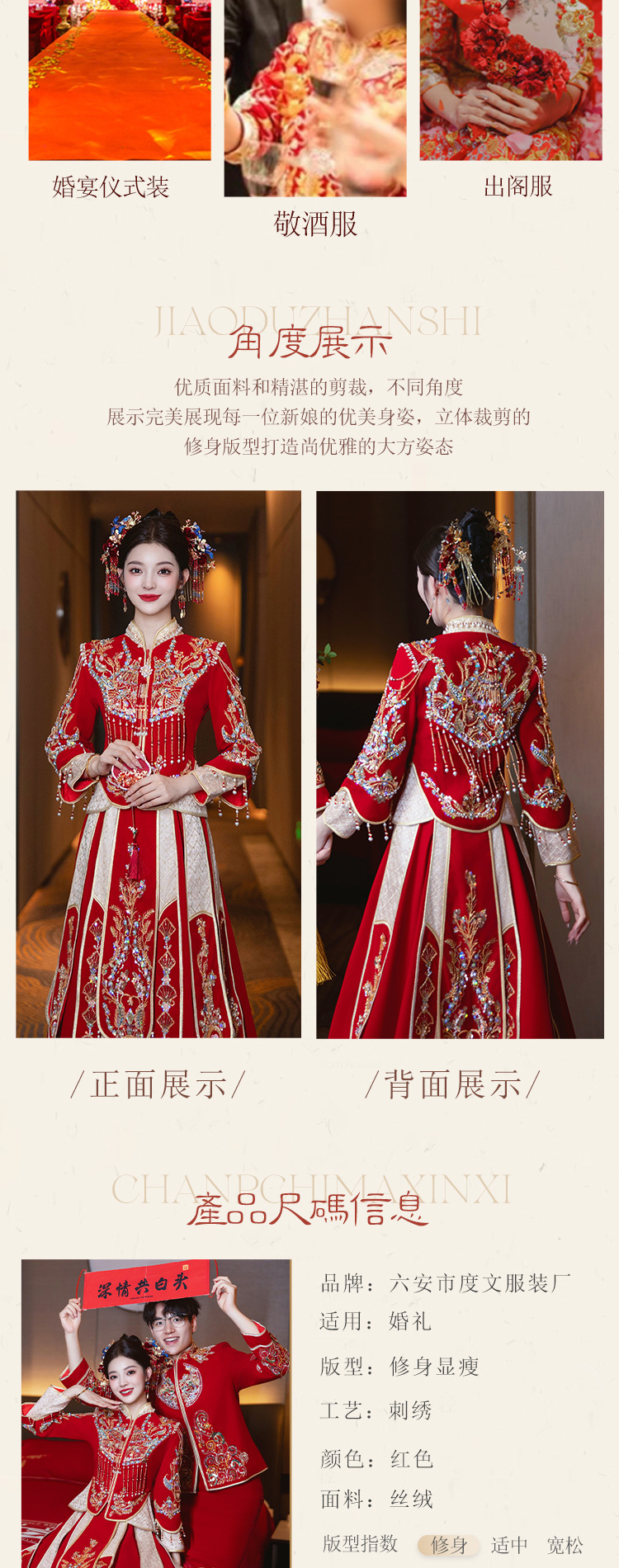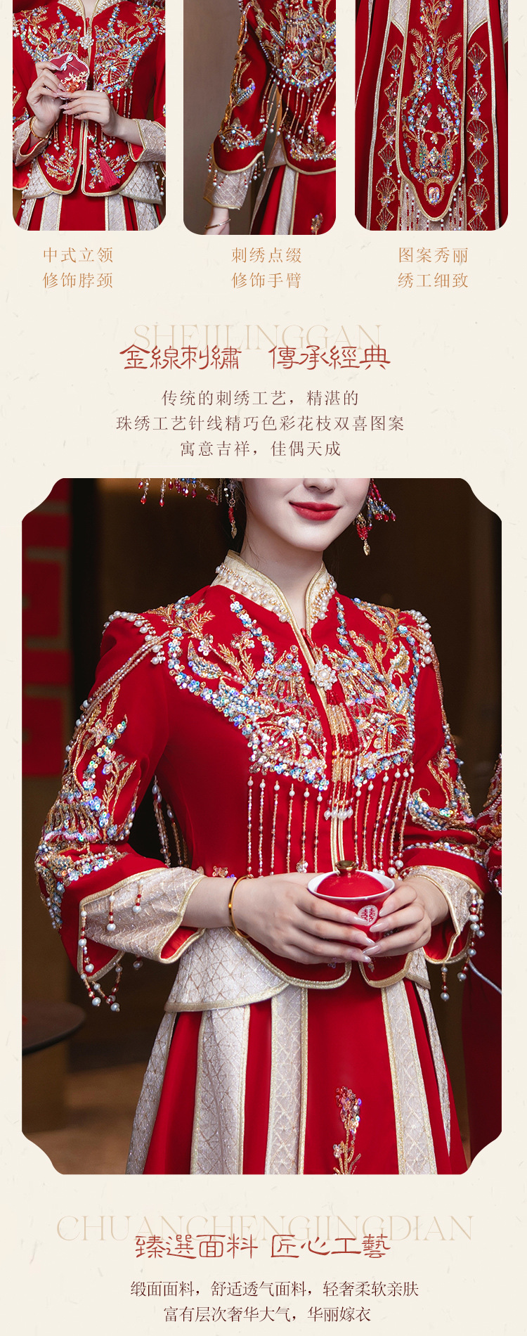 秀禾服2025新作龍鳳服、重刺繍の花嫁衣装、結婚式、乾杯用、出閣服、スリムフィット、小柄な方向け