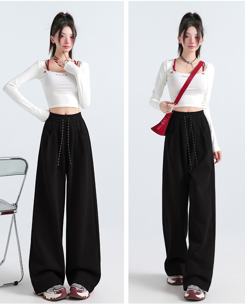 ワイドパンツ女子2024秋の新型カジュアルスポーツひもアメリカスポーツパンツカジュアルパンツ