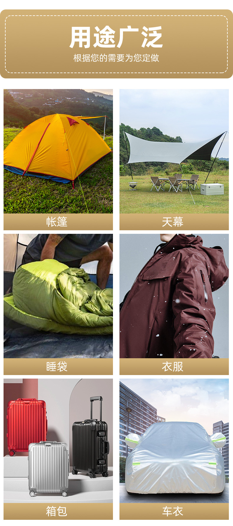 190T210Tポリエステルタフタポリエステル里布プリント防水TPUテント天幕全遮塗装銀屋外生地