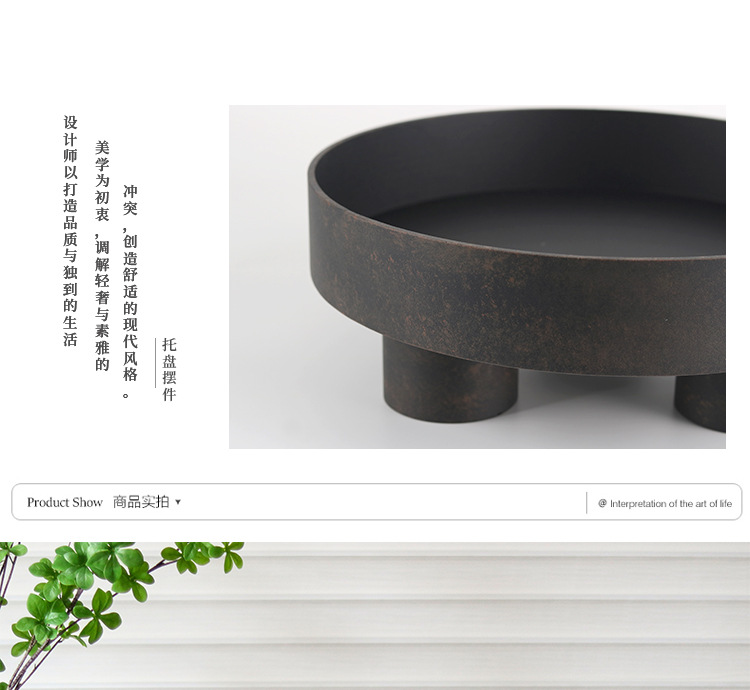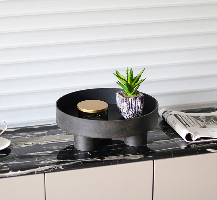 北欧の三脚の丸いトレーの装飾品のリビングルームの果物の皿の玄関のテレビの棚のアイデアの高い足の収納の皿の置物