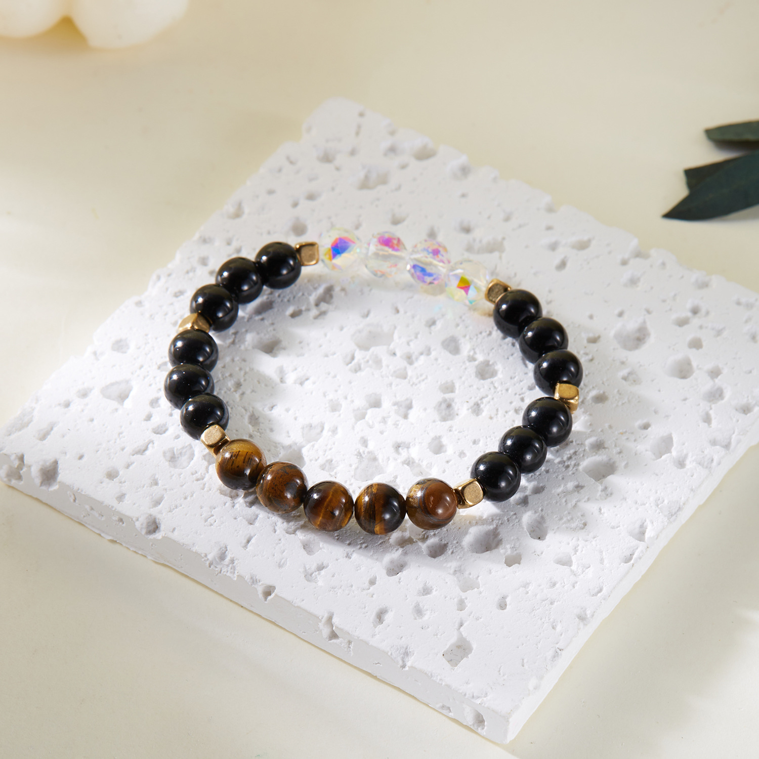 欧米国境を越えた宝飾品天然石幾何ビーズブレスレット8mm東陵石虎眼石天然石弾力ブレスレット