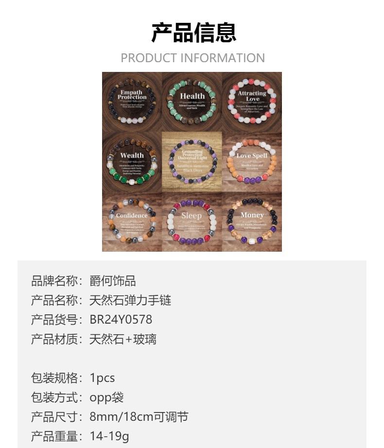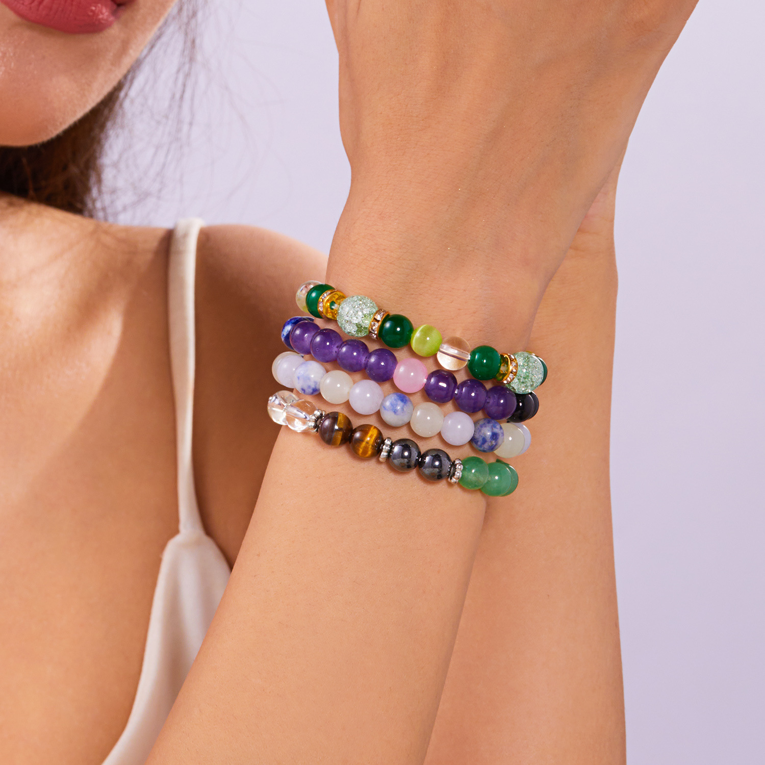 欧米の国境を越えたアクセサリー天然石幾何ビーズブレスレット8mmグラデーション色弾力手作りビーズブレスレット卸売り