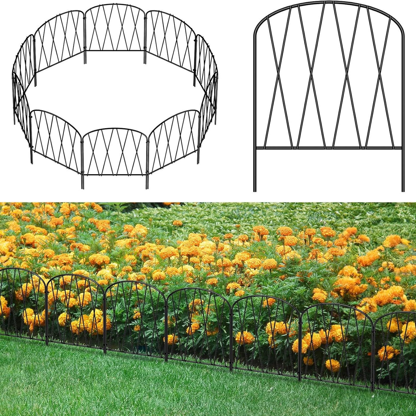 鉄製庭園小型装飾ガーデンフェンスフェンス、防錆金属フレーム犬用動物バリアクロスボーダー