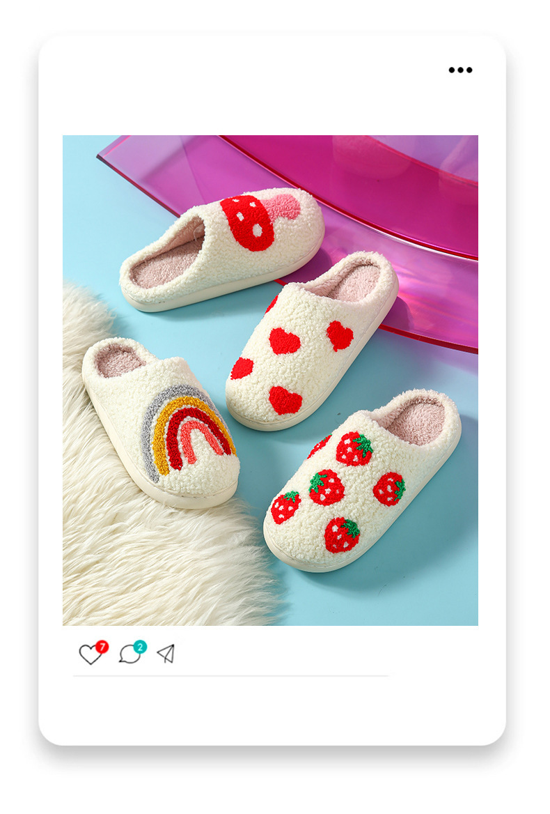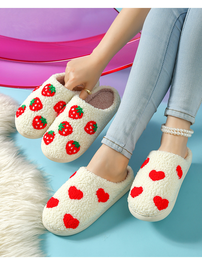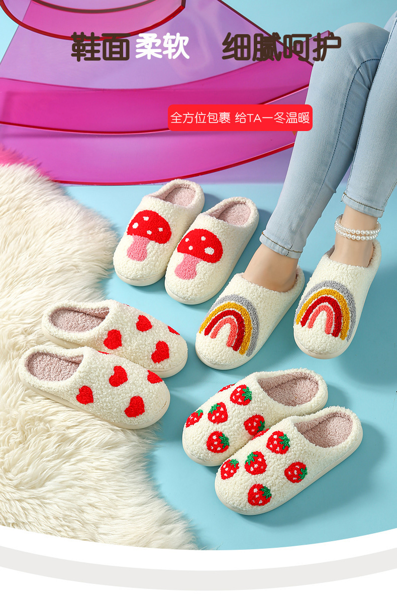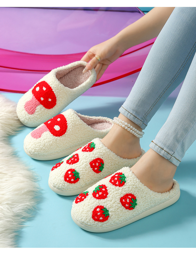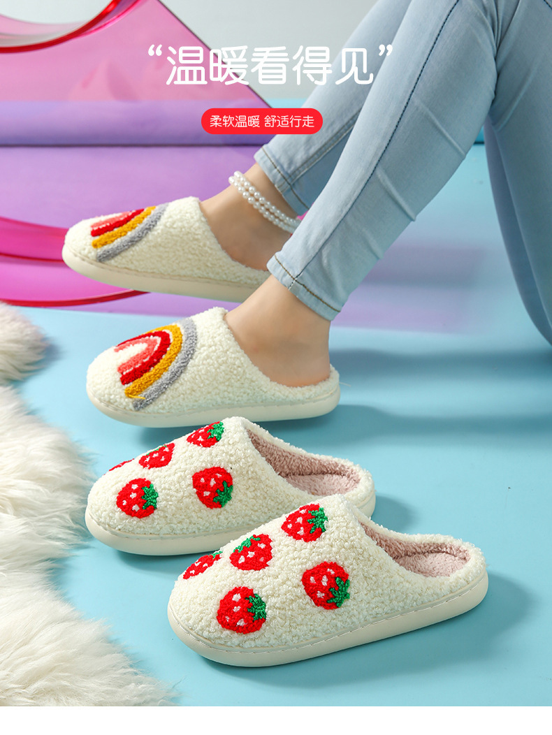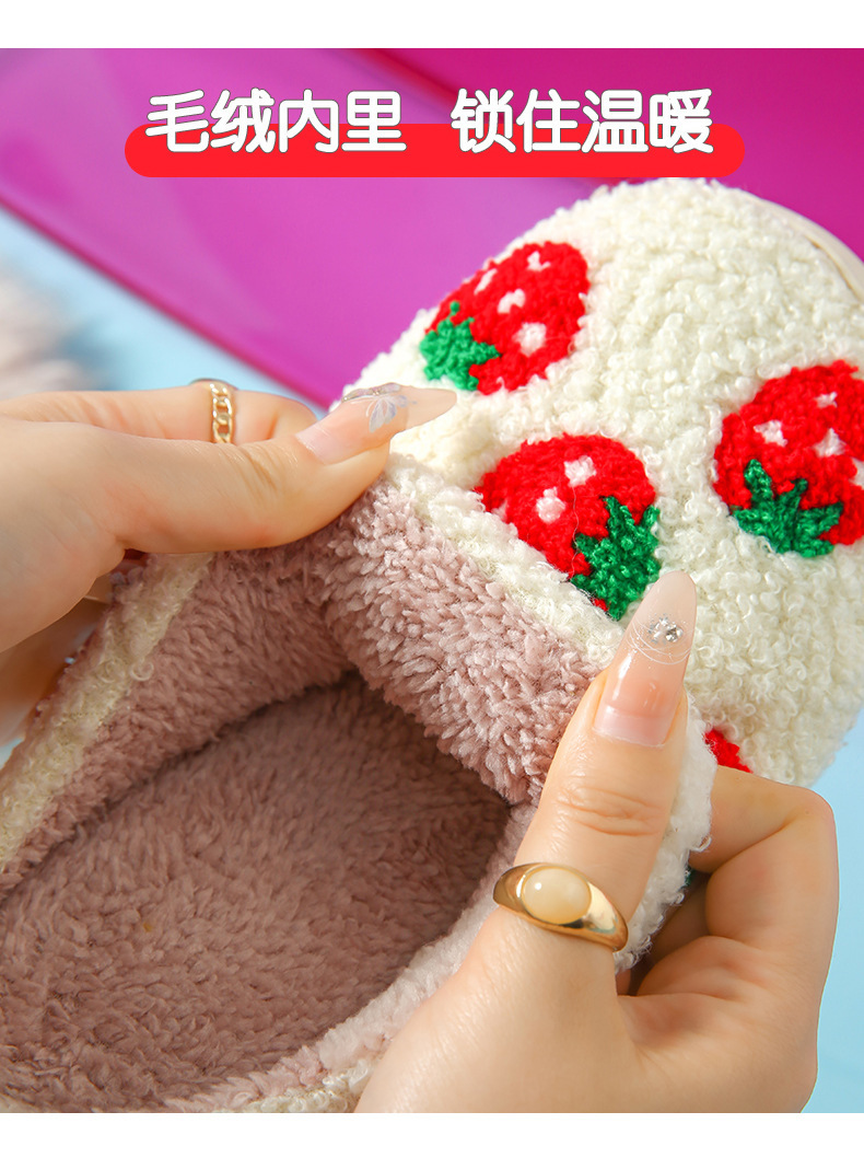 家居棉拖水果拖鞋卡通草莓冬季保暖棉拖鞋情侣居家室内毛绒拖
