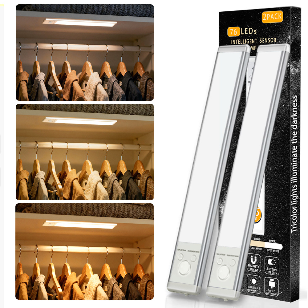 超薄人体感应led灯橱柜酒柜智能充电免打孔自粘卧室小夜灯台灯