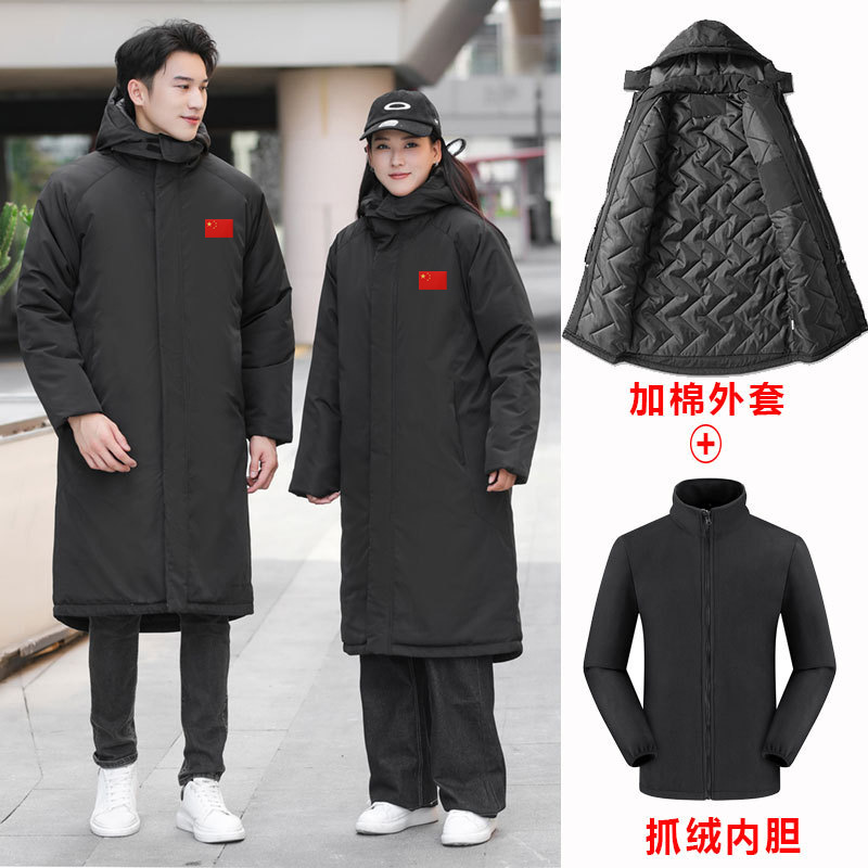 国家队三合一可拆卸内胆棉服加厚男女过膝长款体育生冬训棉大衣