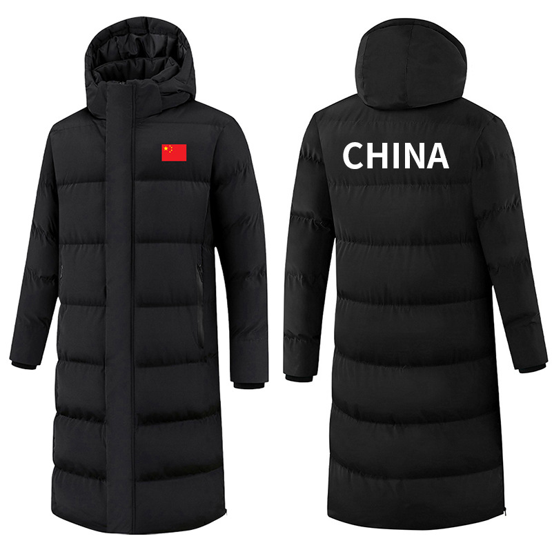 中国チームのスポーツとベルベットのコートのサッカートレーニング冬の厚い綿のコートのバスケットボールの冬のトレーニングは膝のコートを延長します。